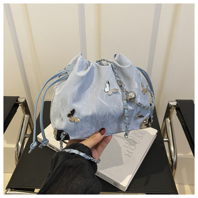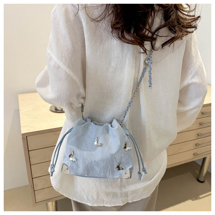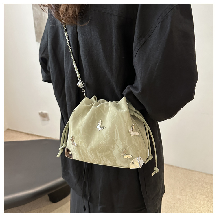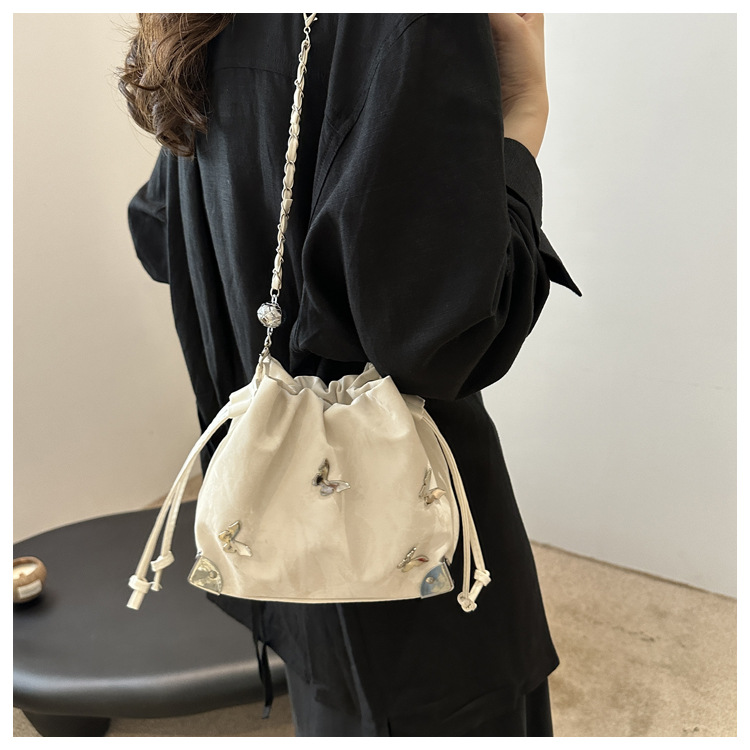 Bolso de cubo Xiaoxiangfeng 2025 verano nuevo estilo bolso de hombro con incrustaciones de diamantes de estilo occidental bolso de mensajero de hilo bordado de diamantes mujer