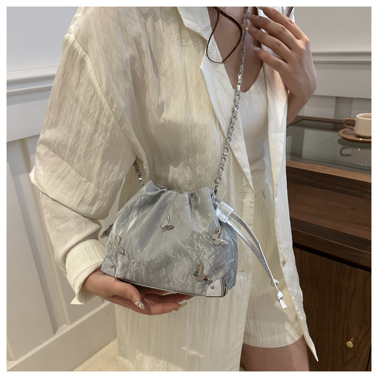 Bolso de cubo de moda coreana 2025 verano nuevo bolso de hombro con patrón de lichi bolso de mensajero de cadena de moda mujer