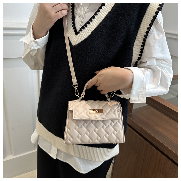Este año, la popularidad de la cerradura casual 2024 nueva moda de invierno de diseño simple, bolso de hombro, bolso de diamante