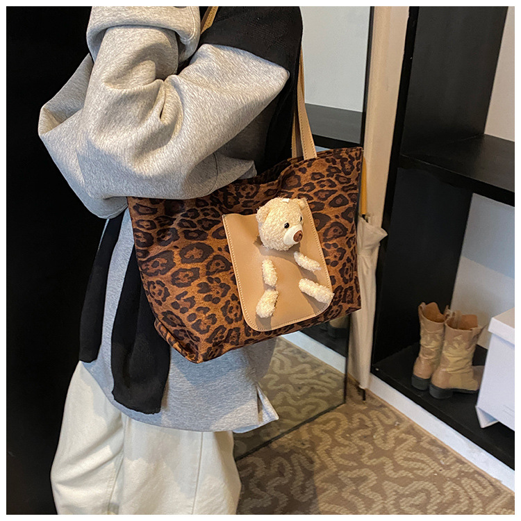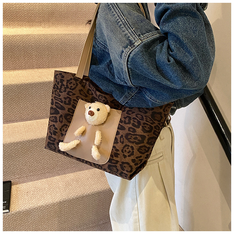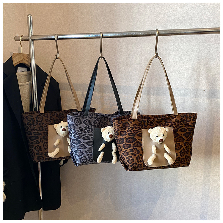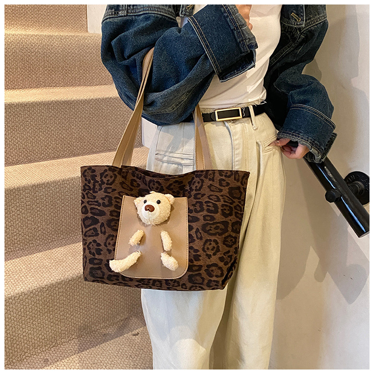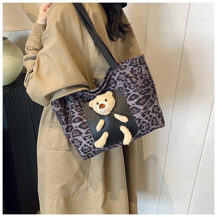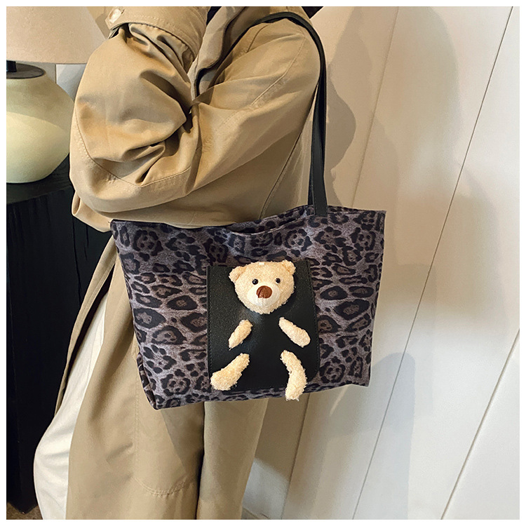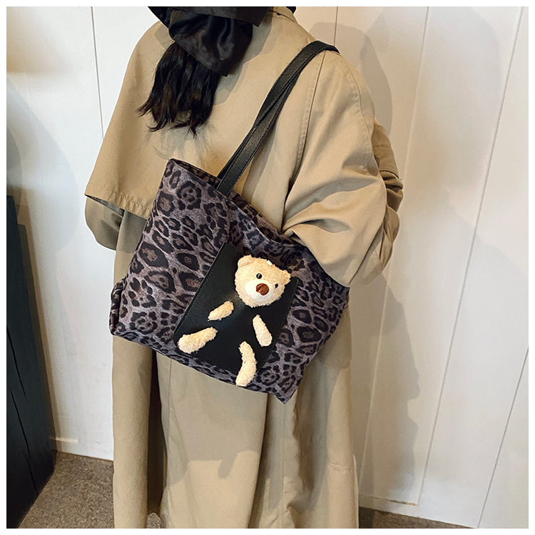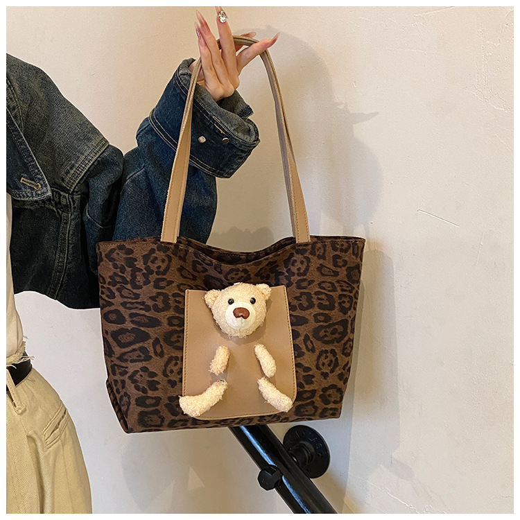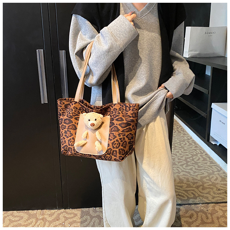 Retro estampado de leopardo de gran capacidad bolsa de tela Tote otoño-invierno muñeca oso lindo viaje bolso de hombro bolso de moda
