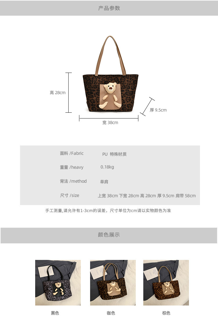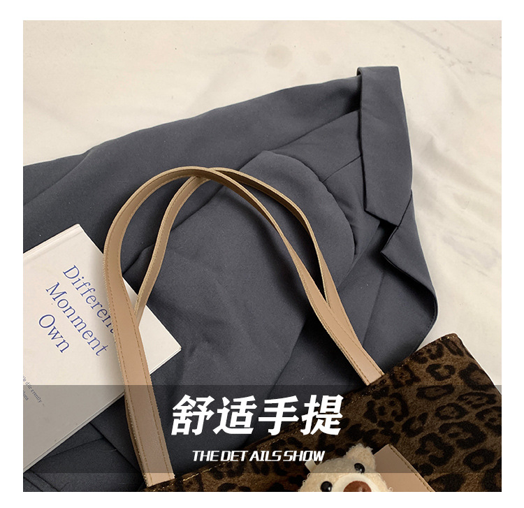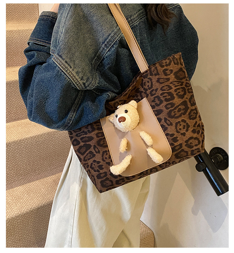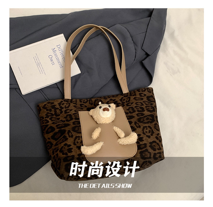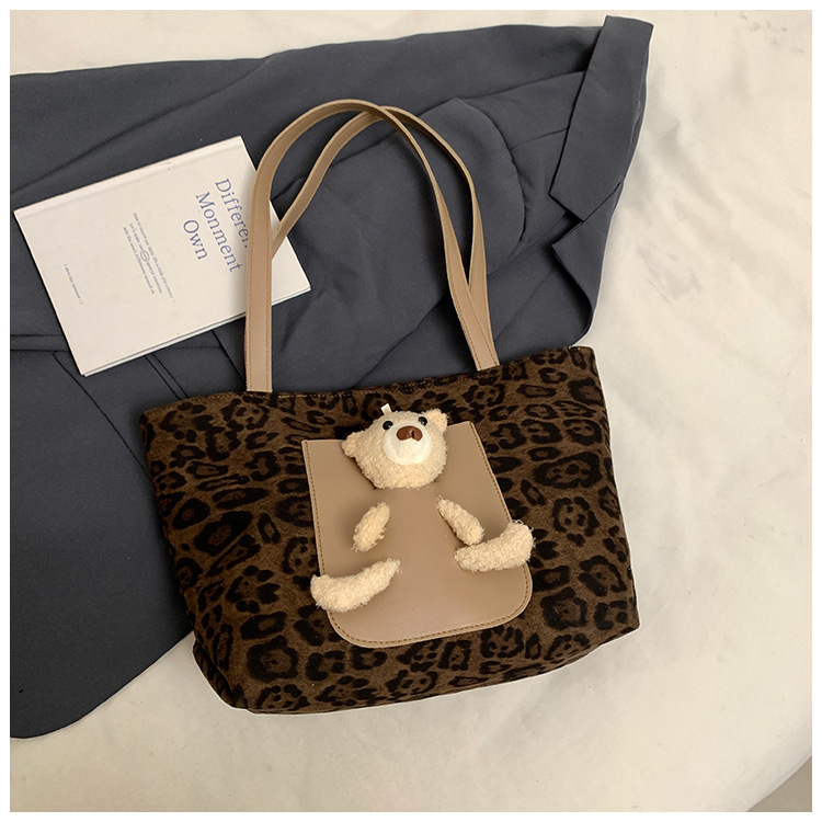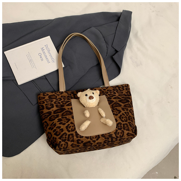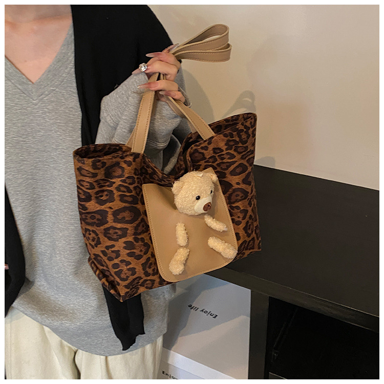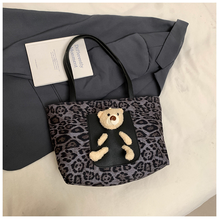 Retro estampado de leopardo de gran capacidad bolsa de tela Tote otoño-invierno muñeca oso lindo viaje bolso de hombro bolso de moda