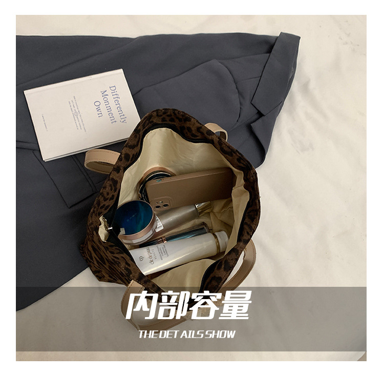 Bolsa de estilo retro para mujeres 2024 nueva moda de invierno impresa de leopardo de gran capacidad para trabajar bolso de hombro