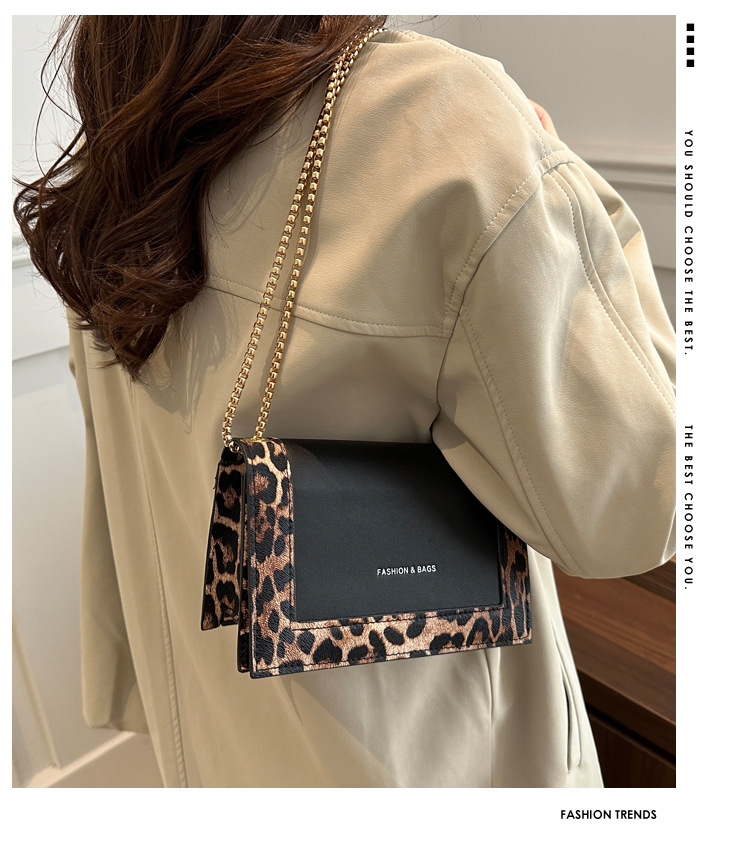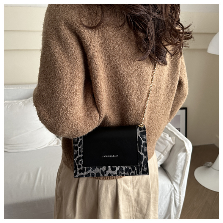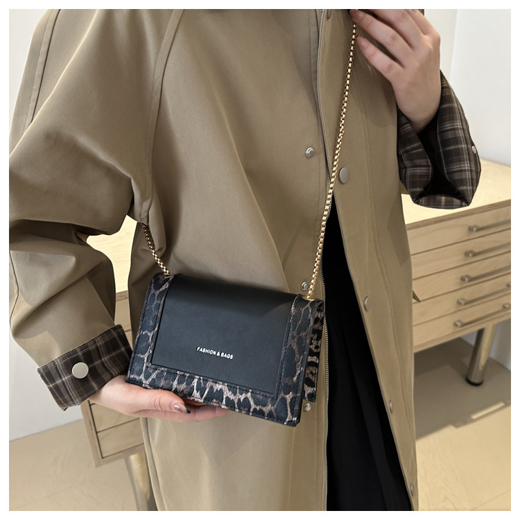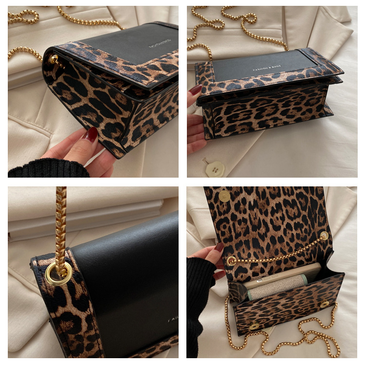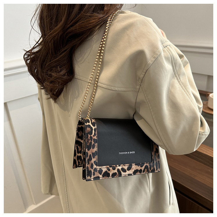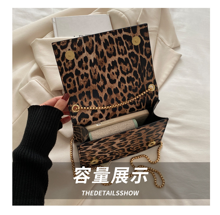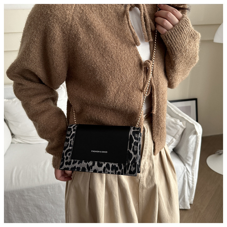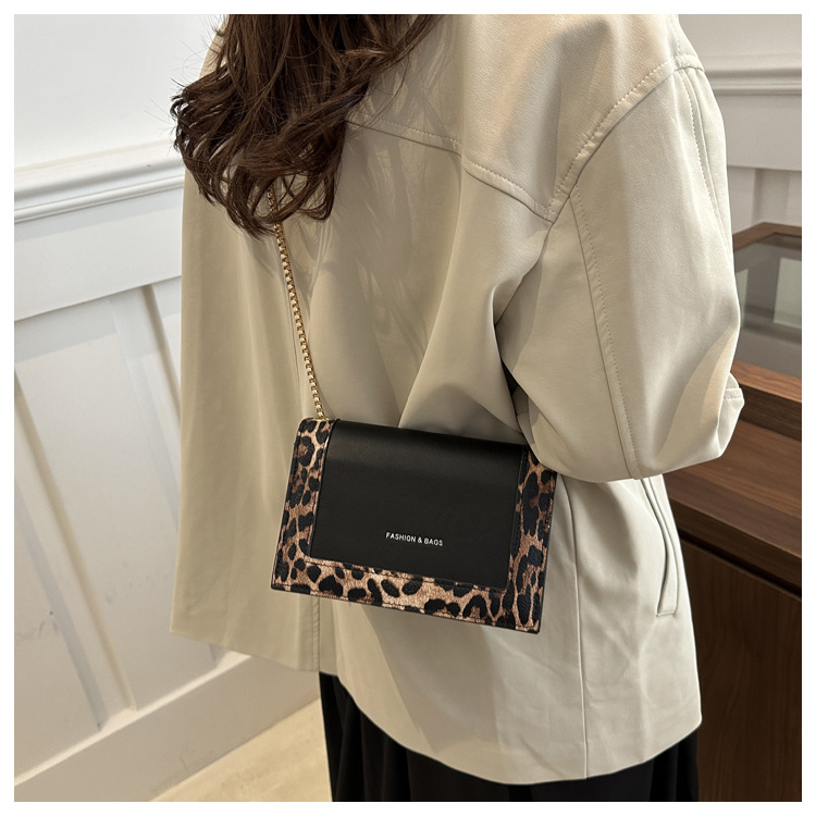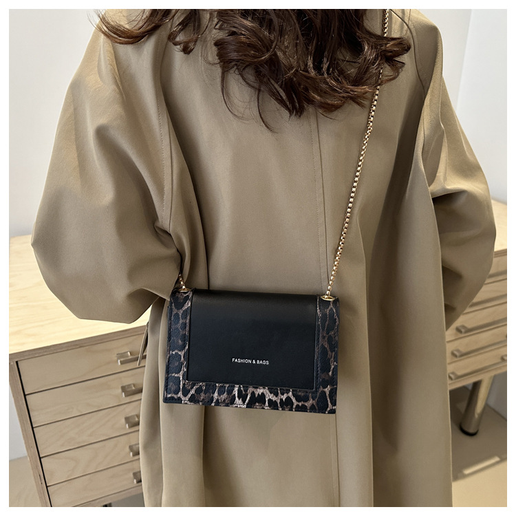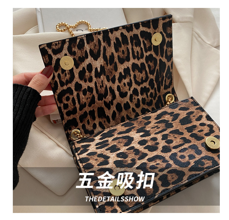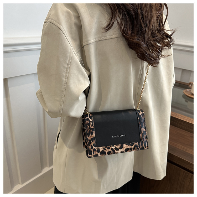 Bolso femenino de un solo hombro 2024 nuevo estilo con estampado de leopardo, mini bolso cuadrado pequeño, temperamento de moda, bolso de mensajero de nicho de moda