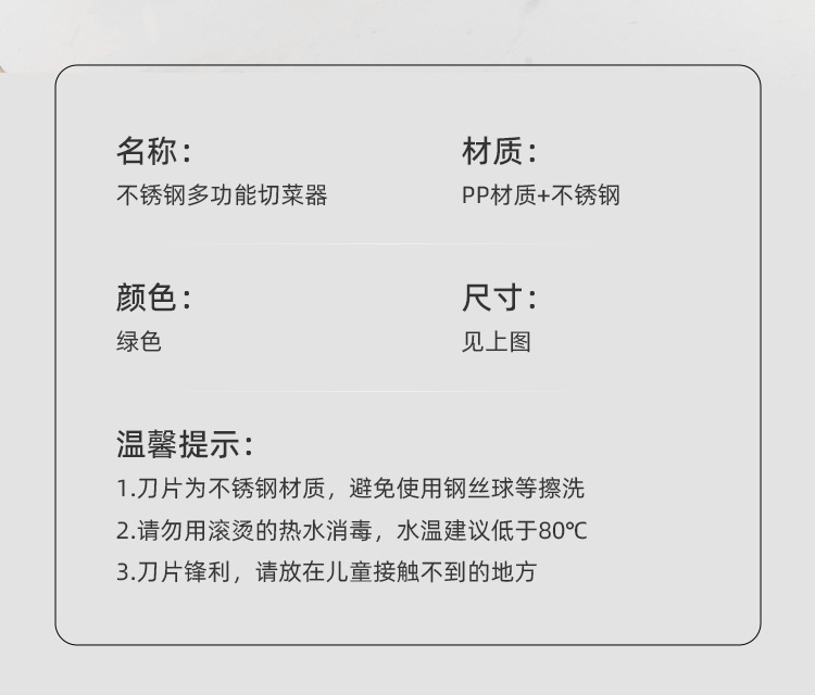 | Categoría de producto | Cortador de verduras multifuncional |