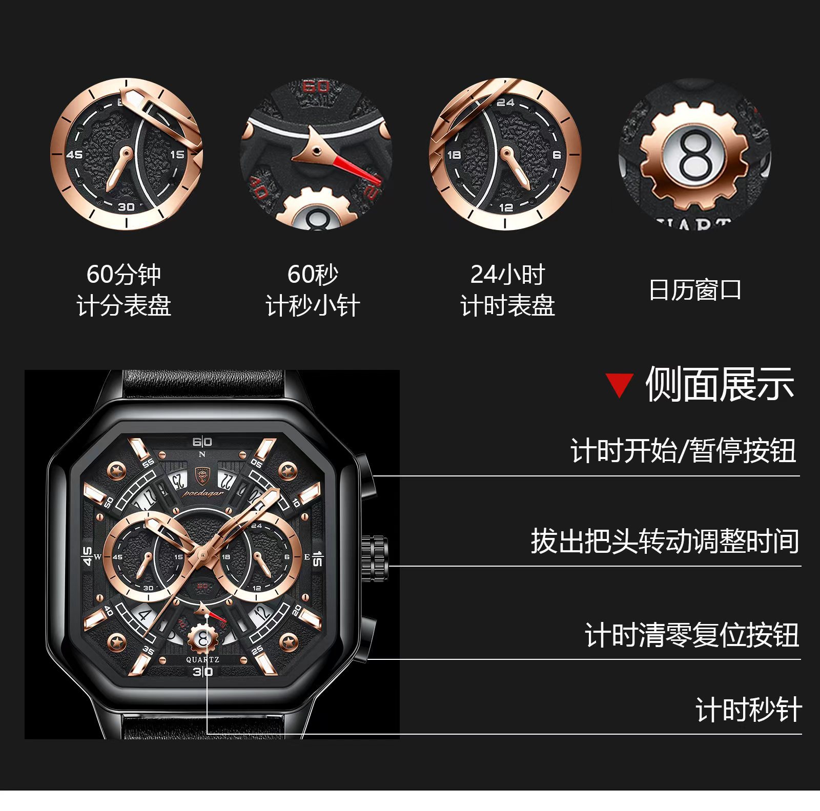 | Funciones Especiales | Decoración, luz nocturna, cronómetro, calendario, cuenta atrás, tres pequeños puntos, medición de velocidad, otros |
