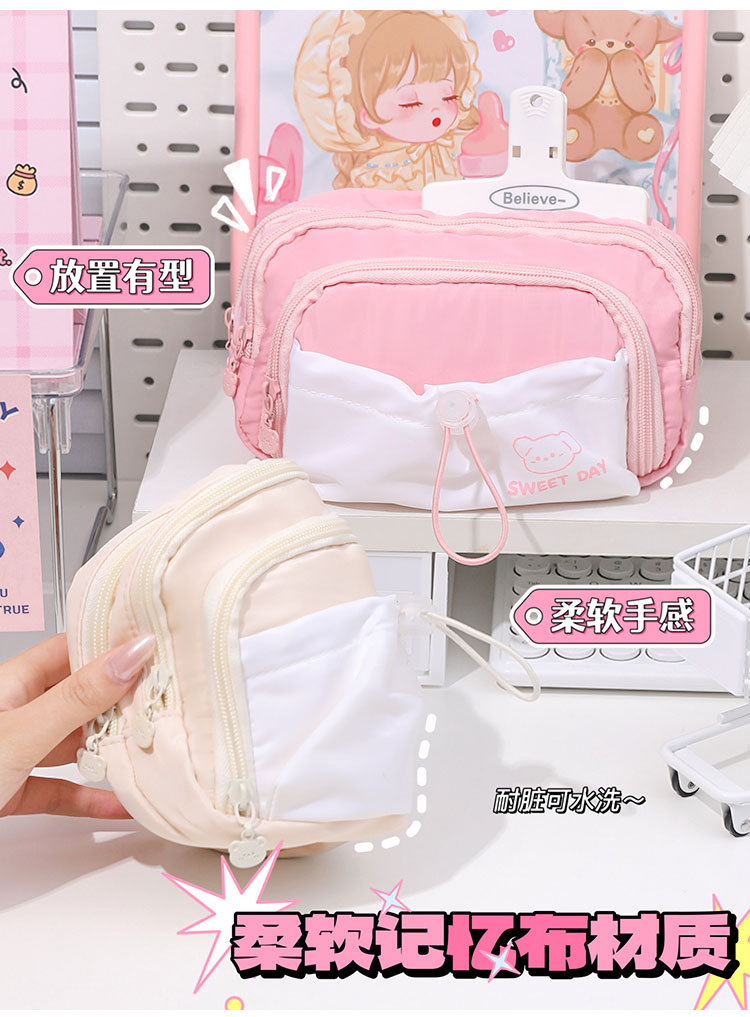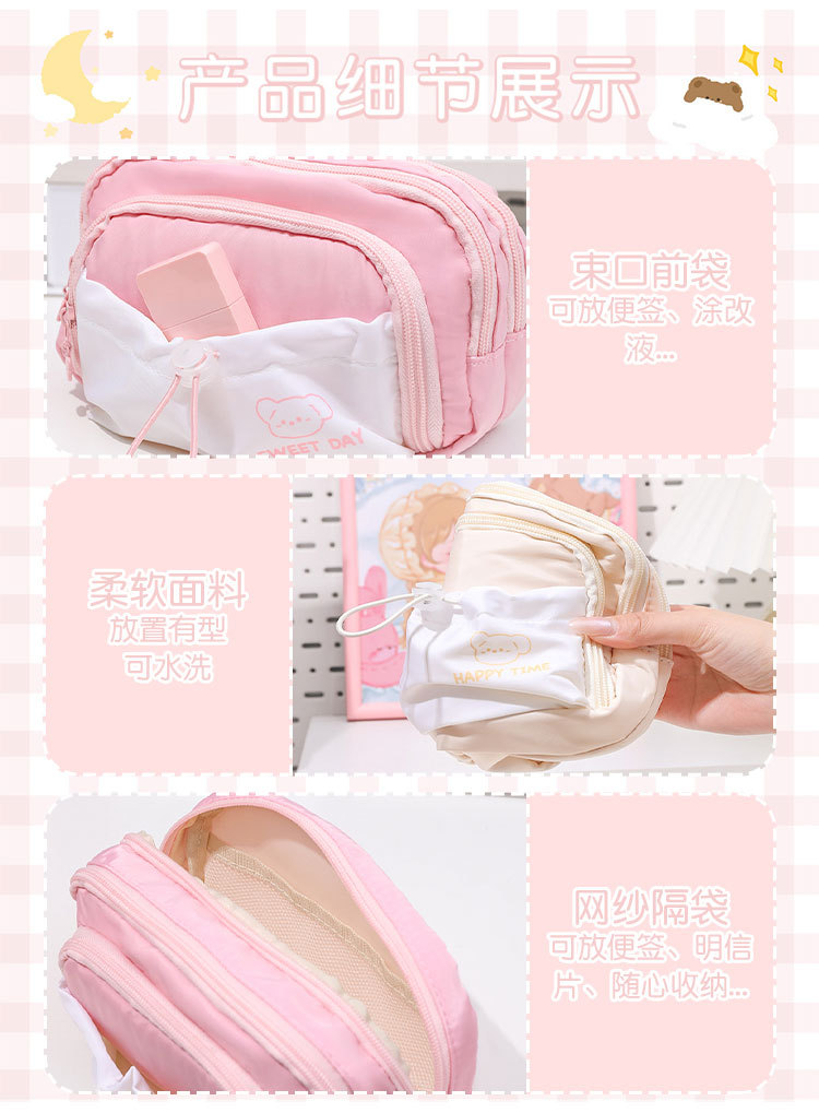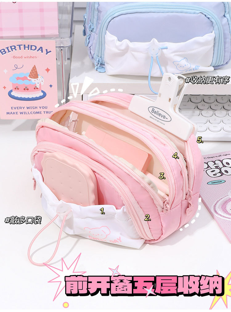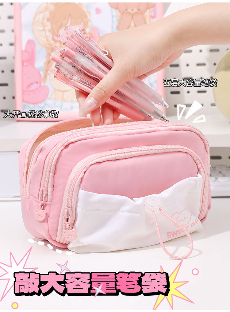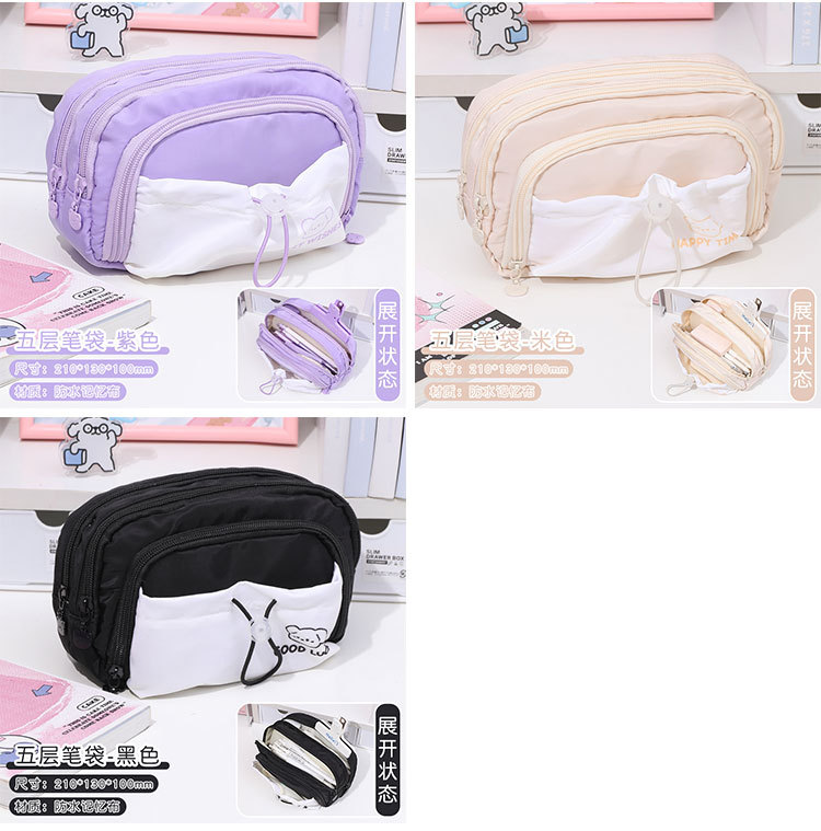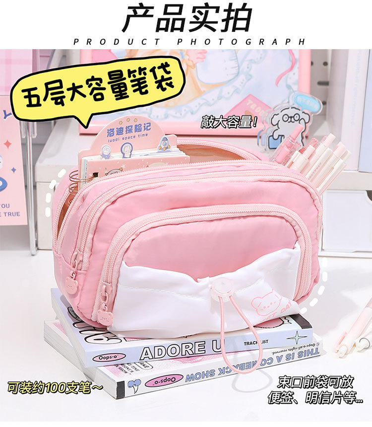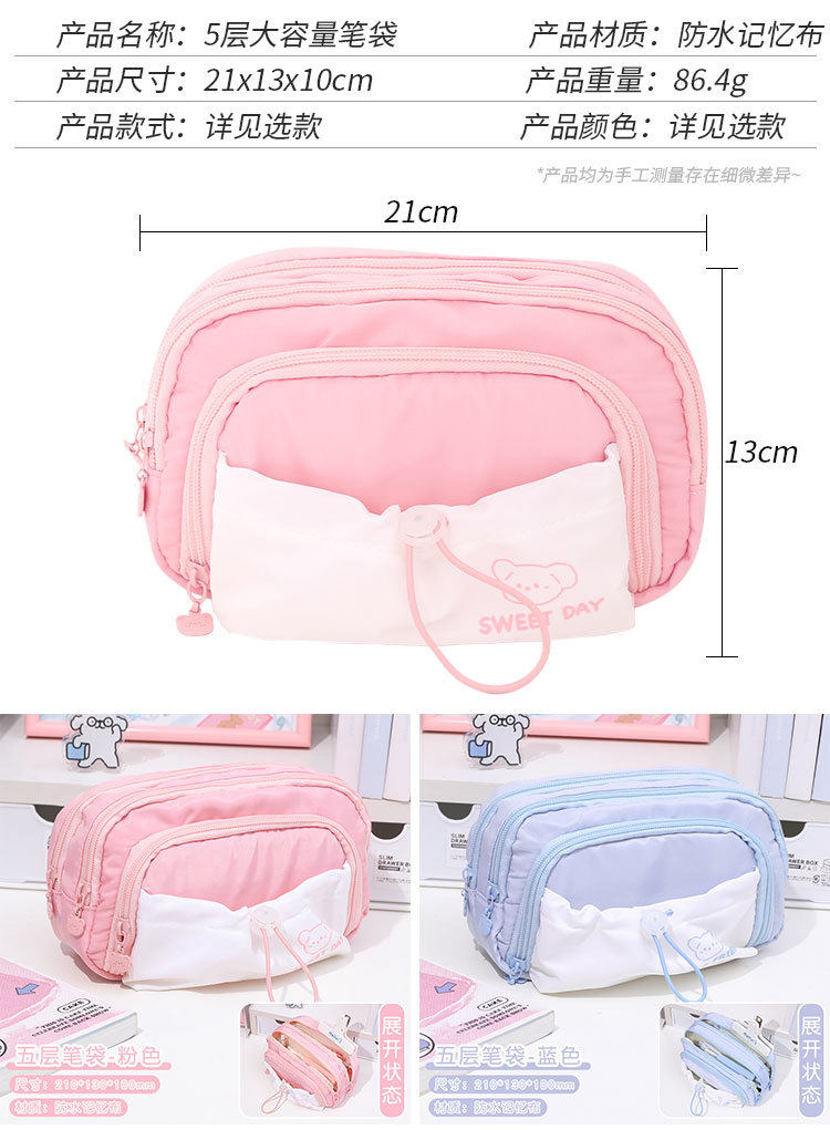 Cinco capas de gran capacidad caja de lápiz 2023 niñas nuevo simple de alto aspecto de la escuela secundaria caja de papelería cordón retráctil Pequeño bolsillo