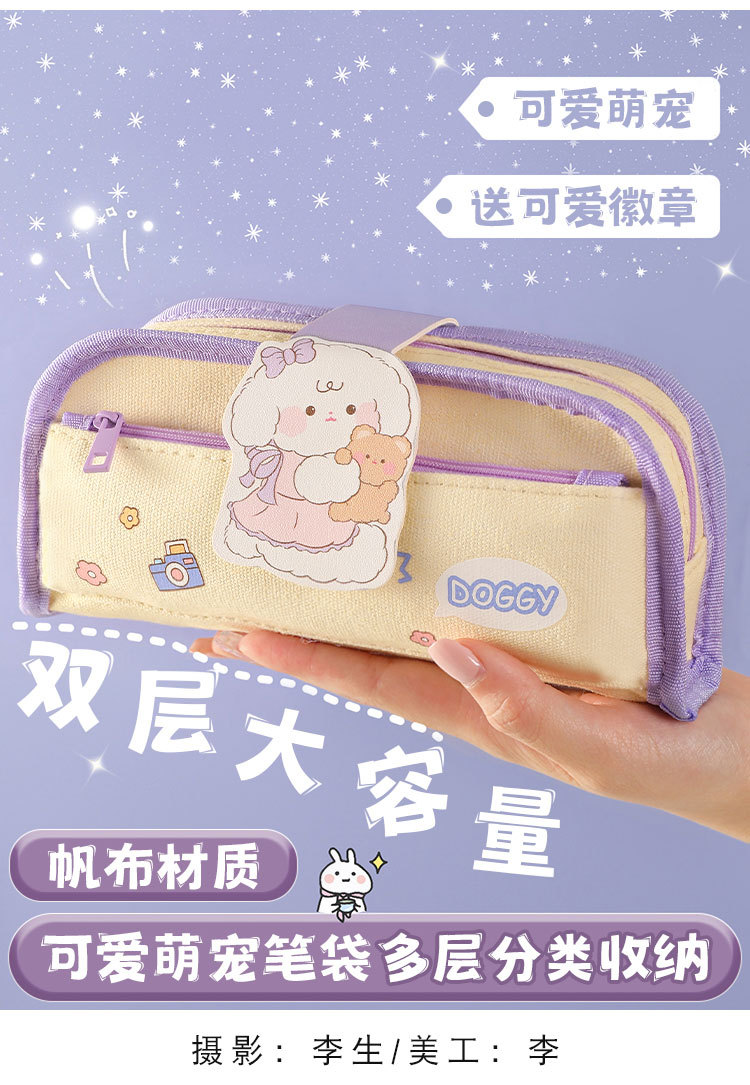 Caja de lápiz de gran capacidad al por mayor escuela secundaria estudiante de la escuela primaria caja de papelería de lona simple Linda mascota ins estilo caja de lápiz bolsa de papelería