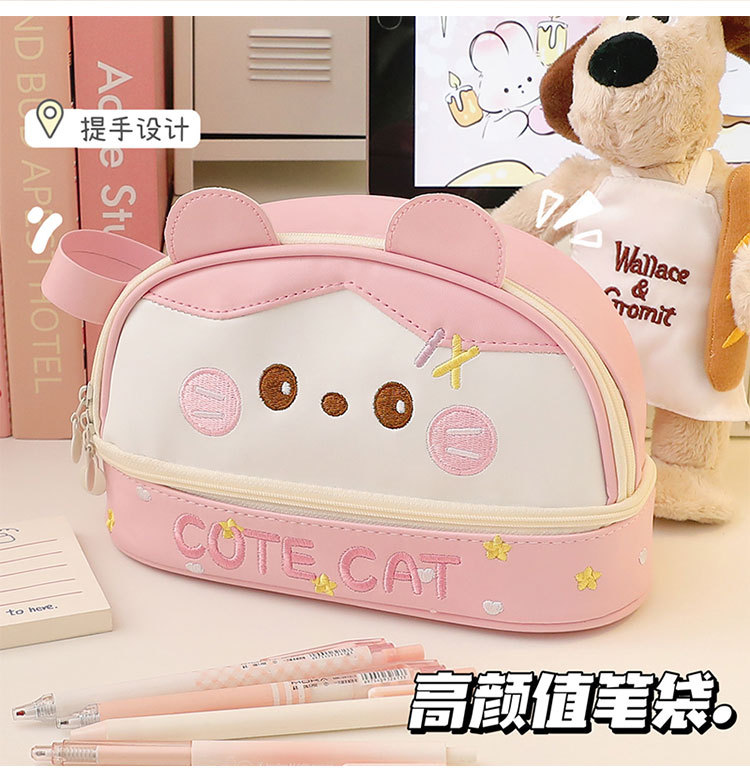 Bolígrafo bordado de gran capacidad - panda negro, bolígrafo bordado de gran capacidad - gato rosa, bolígrafo bordado de gran capacidad - gato gris