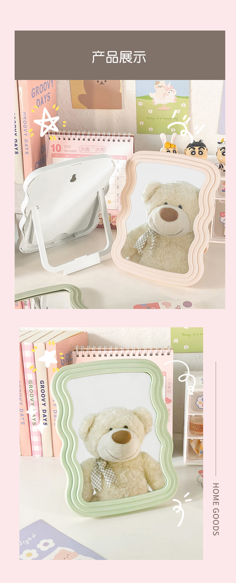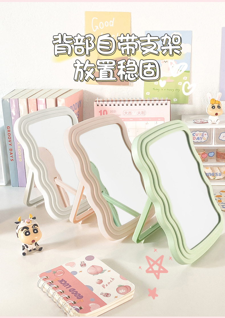 Espejo de maquillaje ondulado de maquillaje de niñas macarrón de alto valor espejo de dormitorio de oficina portátil colgar espejo