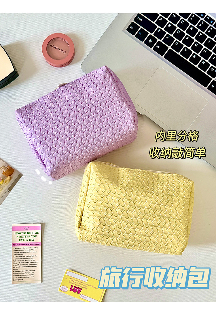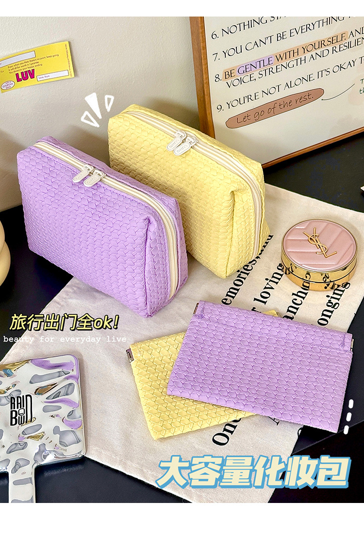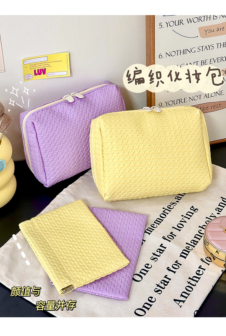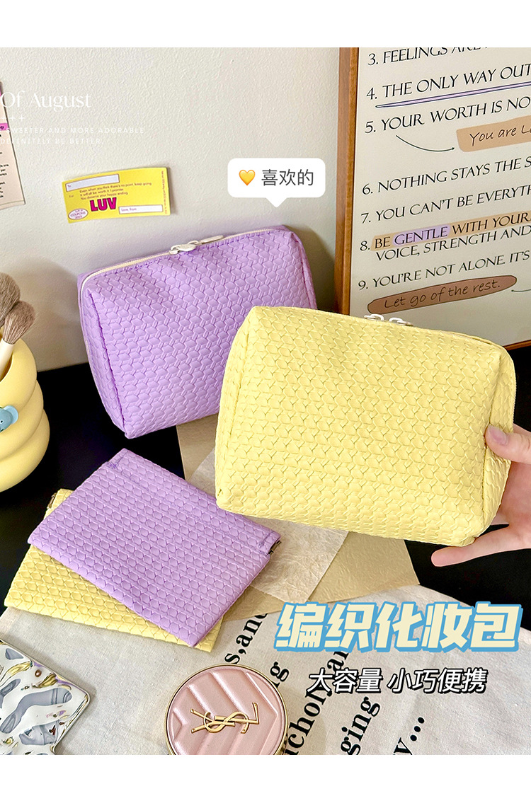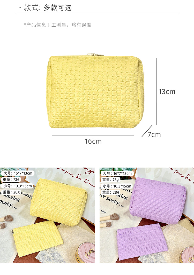 | Color | Bolso de maquillaje grande con estampado tejido - amarillo, bolso de maquillaje grande con estampado tejido - morado, bolso de maquillaje pequeño con estampado tejido - amarillo, bolso de maquillaje pequeño con estampado tejido - morado |