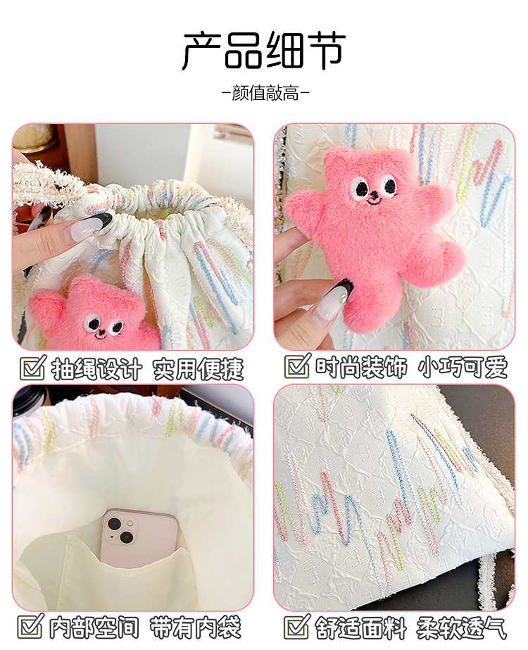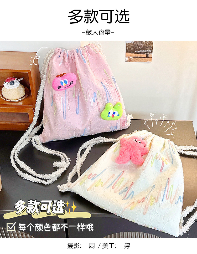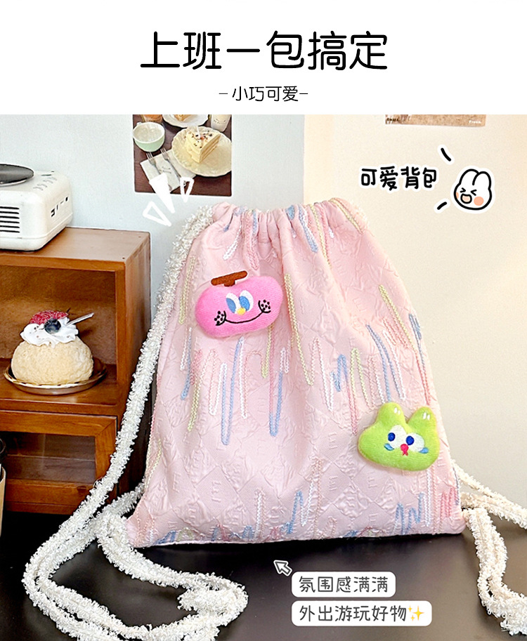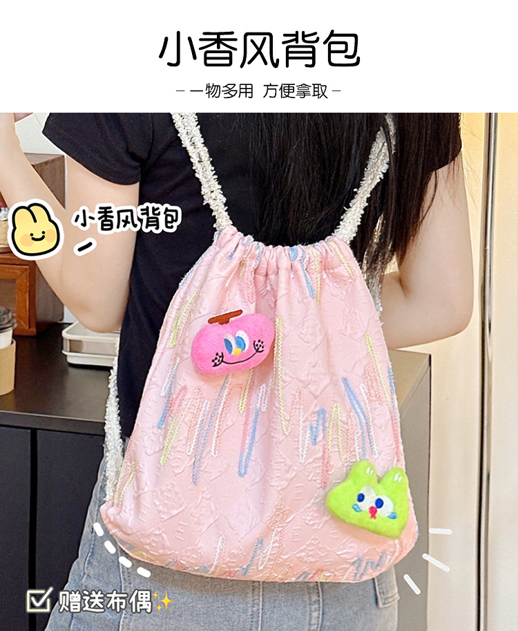 Bolso de hombro de cuerda de extracción - bolso de hombro rosa, bolso de hombro de cuerda de extracción - cinturón rosa con 2 colgantes