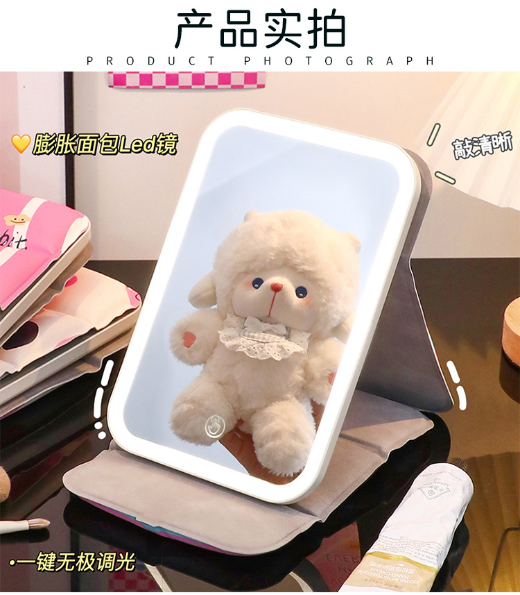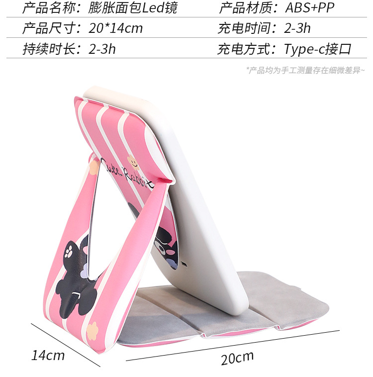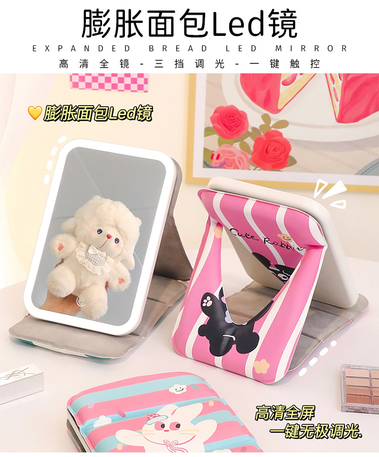 | Color | Espejo de maquillaje LED de pan - gato de caramelo de leche, espejo de maquillaje LED de pan - cachorro verde leche, espejo de maquillaje LED de pan - conejo azul rosa, espejo de maquillaje LED de pan - conejo negro |
