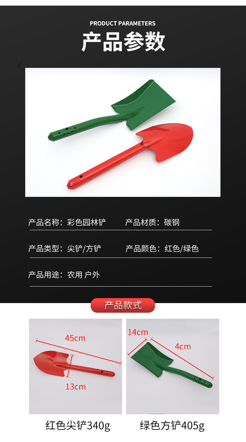 Colorido engrosado Jardín pala puntiaguda pala cuadrada hogar plantación verduras plantación de flores pequeña pala excavación de verduras silvestres excavación arena conducción pala de mar