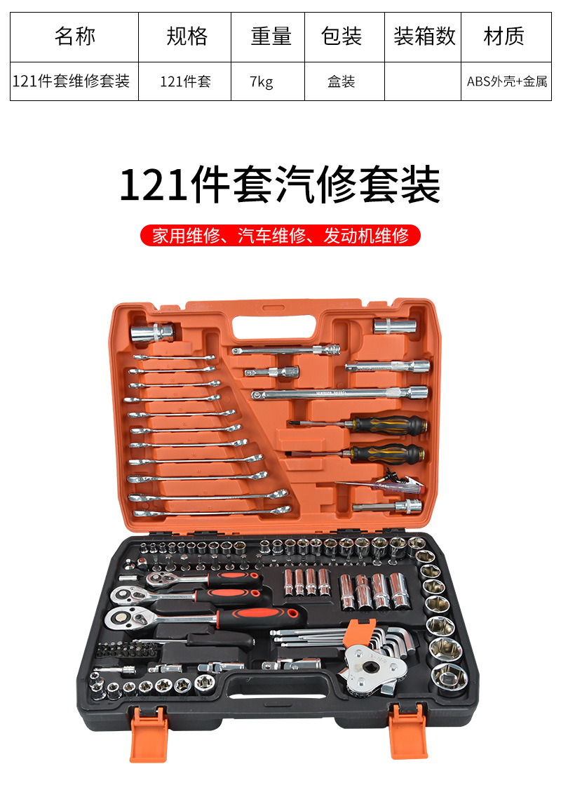 121-Piece Socket llave traje caja de reparación de automóviles Llave de trinquete herramienta de reparación de automóviles traje multifuncional