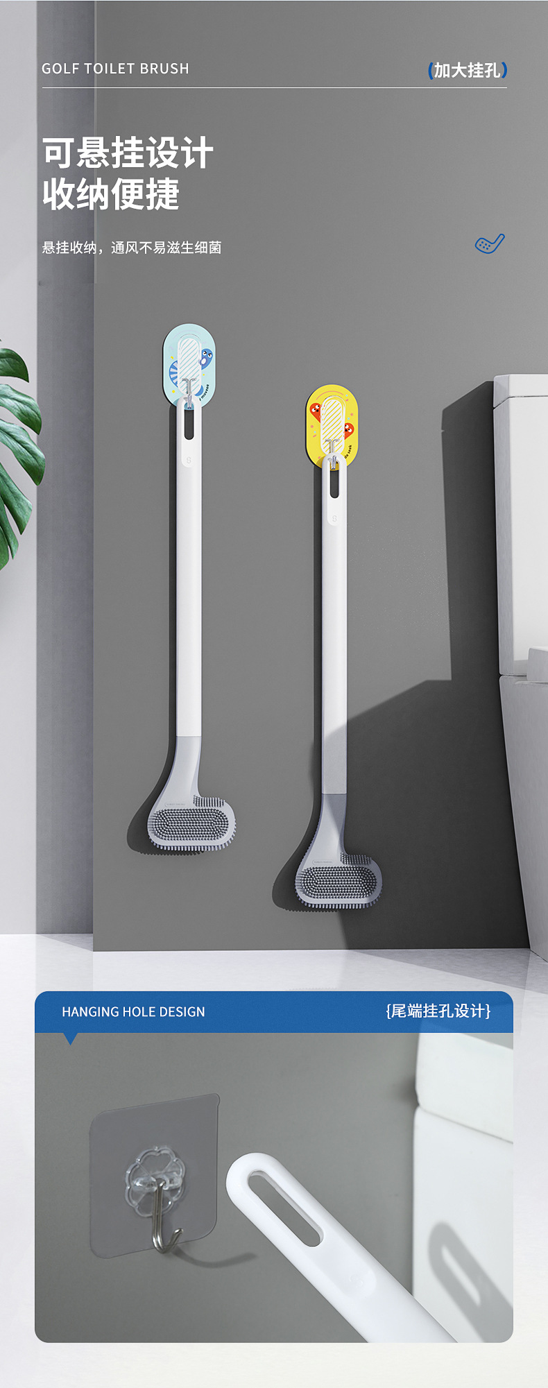 Nuevo cepillo de baño de golf de plástico flexible hogar montado en la pared cepillo de baño multifuncional cepillo de limpieza de inodoro al por mayor