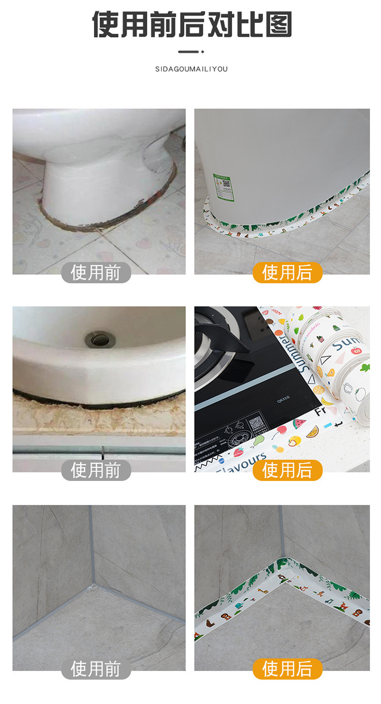 Tira de sellado de costura de cocina banco de cocina cinta a prueba de aceite tanque de piscina pegatinas a prueba de moho pegatinas de inodoro pegatinas de costura de belleza al por mayor