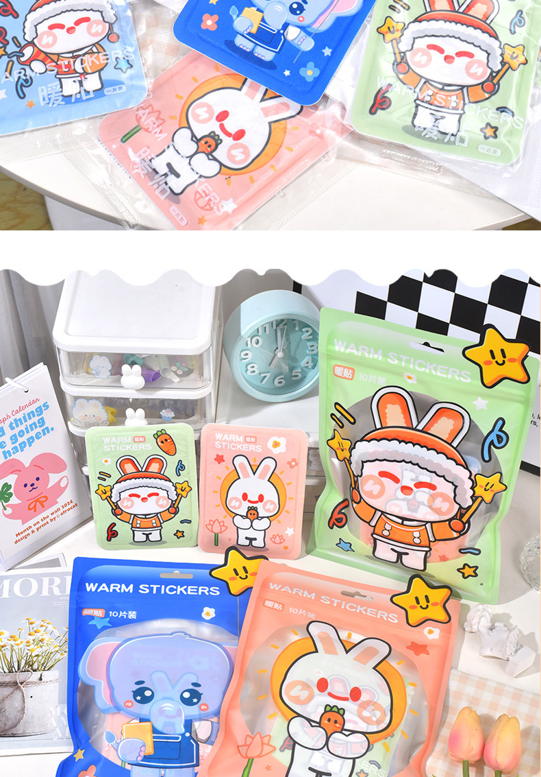 Pegatinas cálidas engrosadas pegatinas de dibujos animados para bebés cálidos pegatinas de calentamiento automático pegatinas calientes para bebés al por mayor pegatinas de dibujos animados lindos para mantener el calor