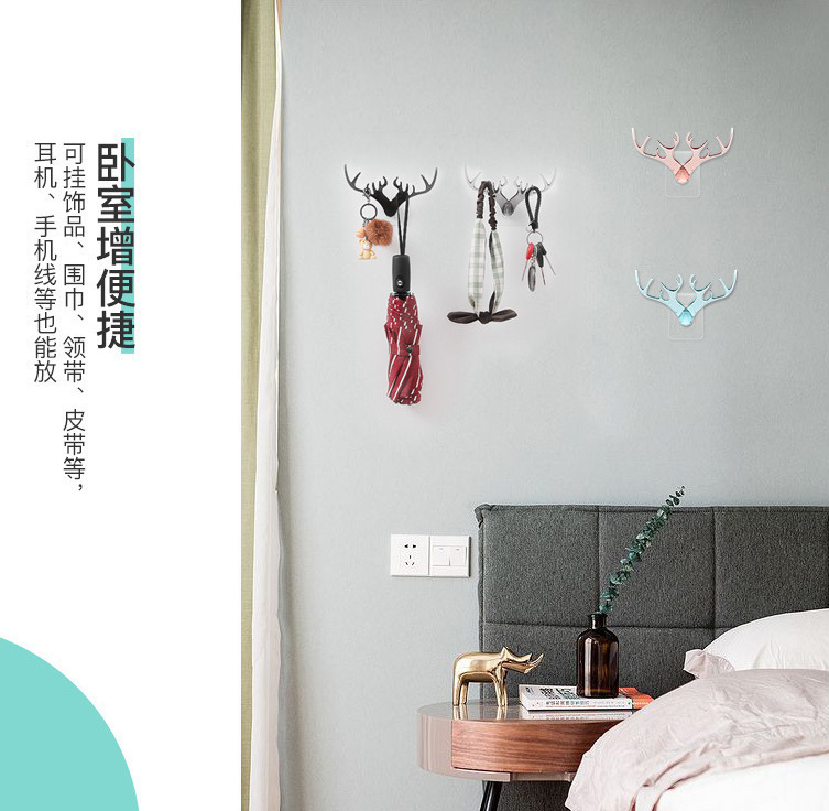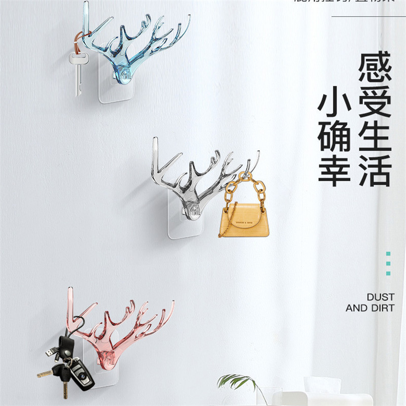 Gancho de asta Decoración de pared nórdica Gancho pequeño Personalidad creativa Cabeza de ciervo Llave de pared sin costuras tridimensional Gancho Adhesivo de pared