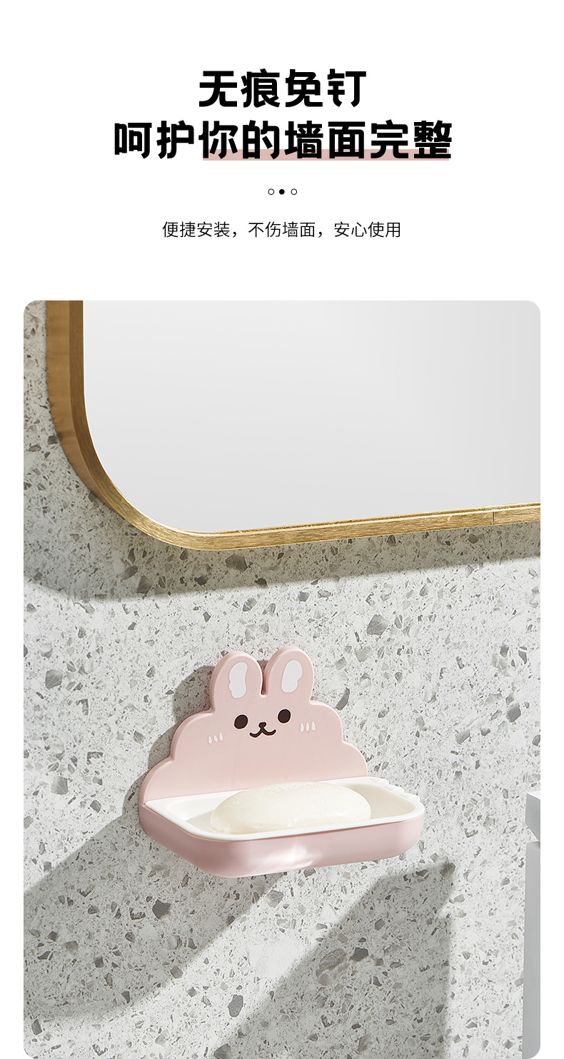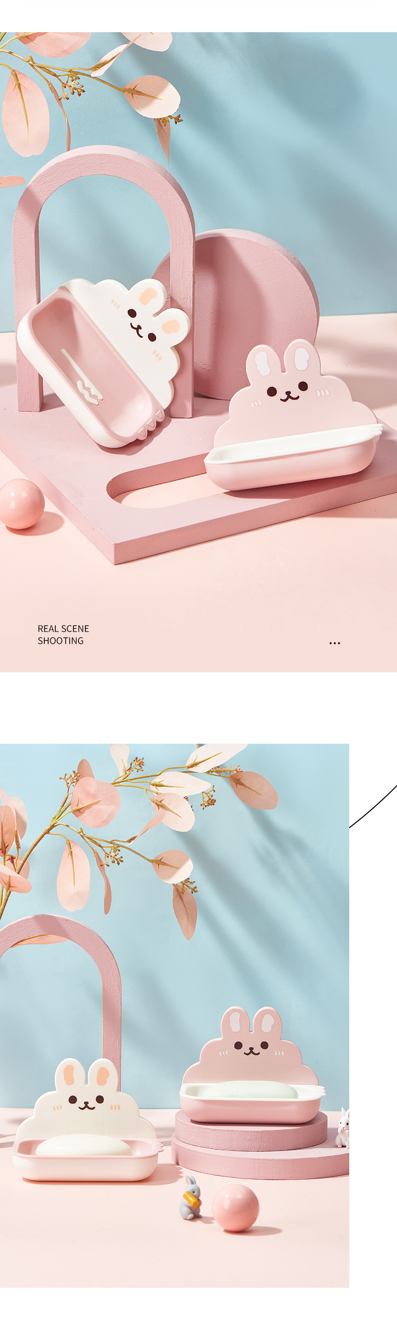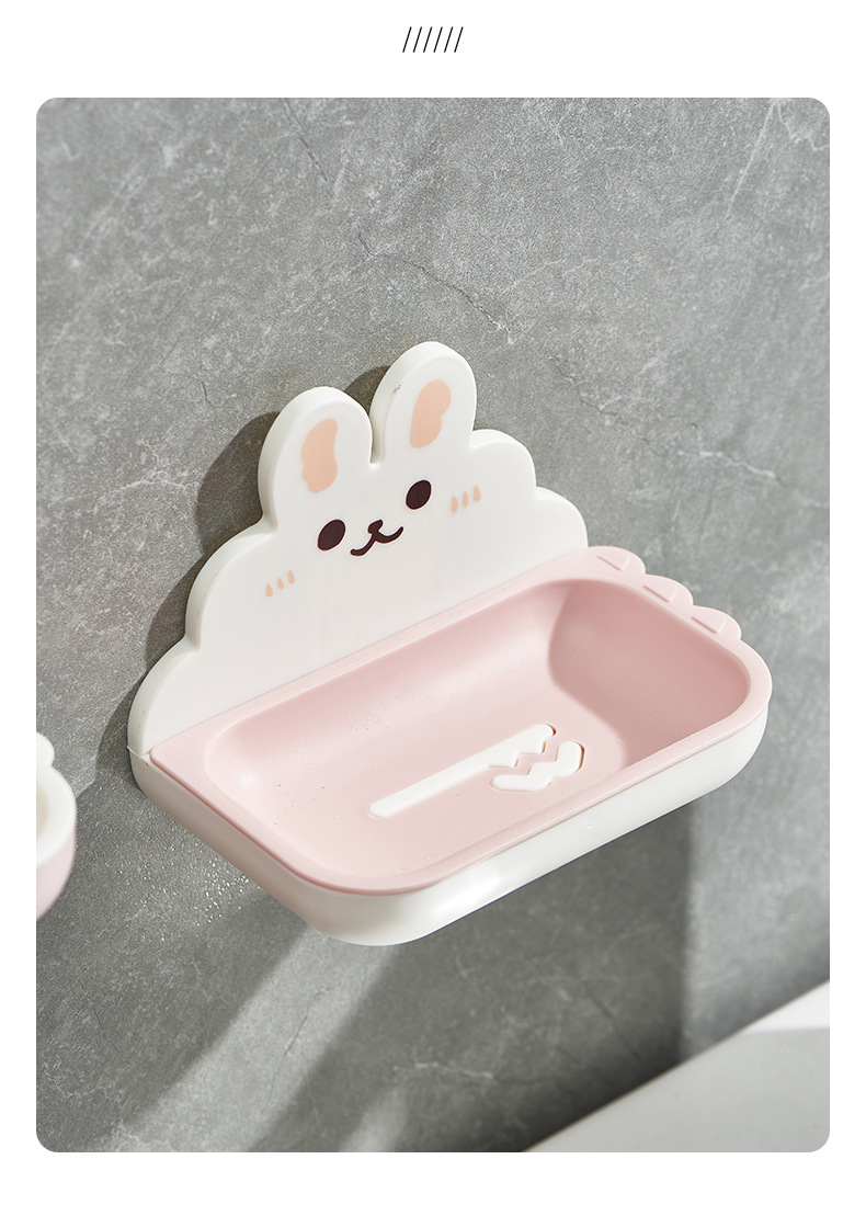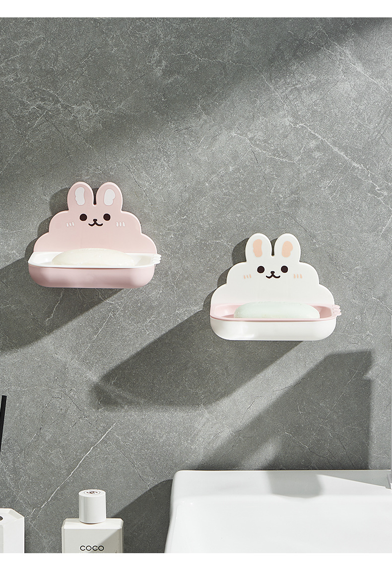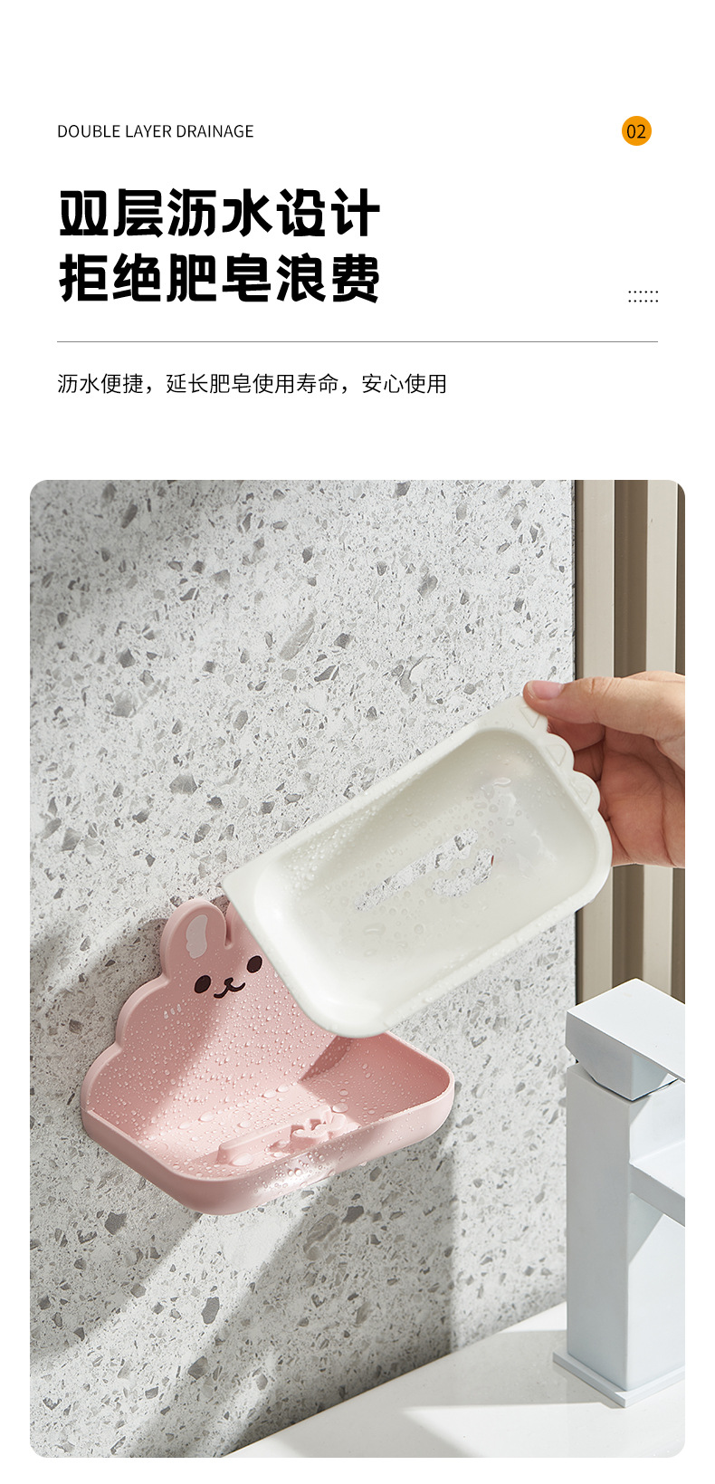 Caja de jabón nueva caja de jabón de conejo de dibujos animados para el hogar estante de jabón montado en la pared drenaje de doble capa sin ponche