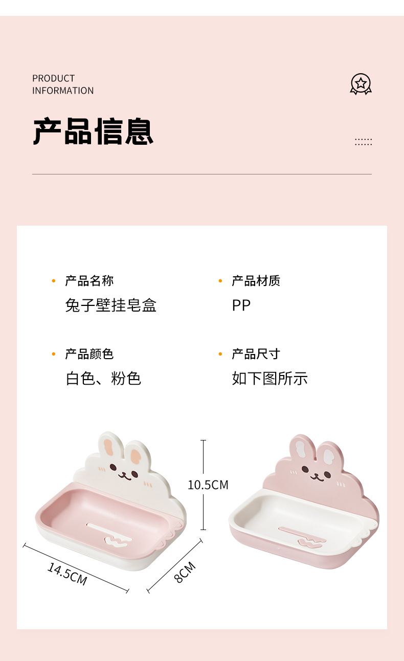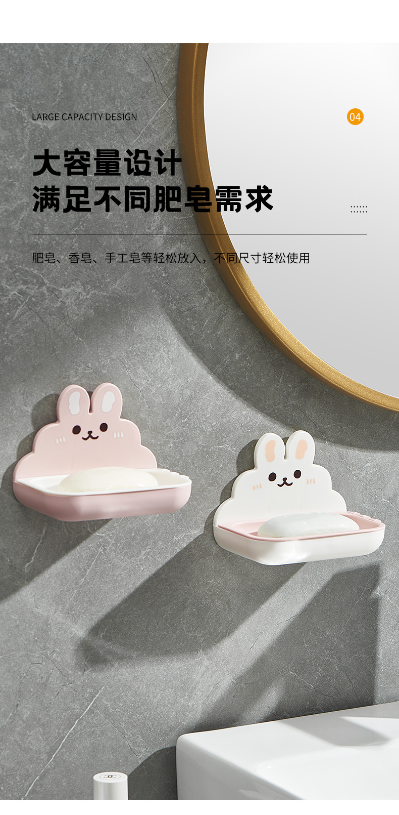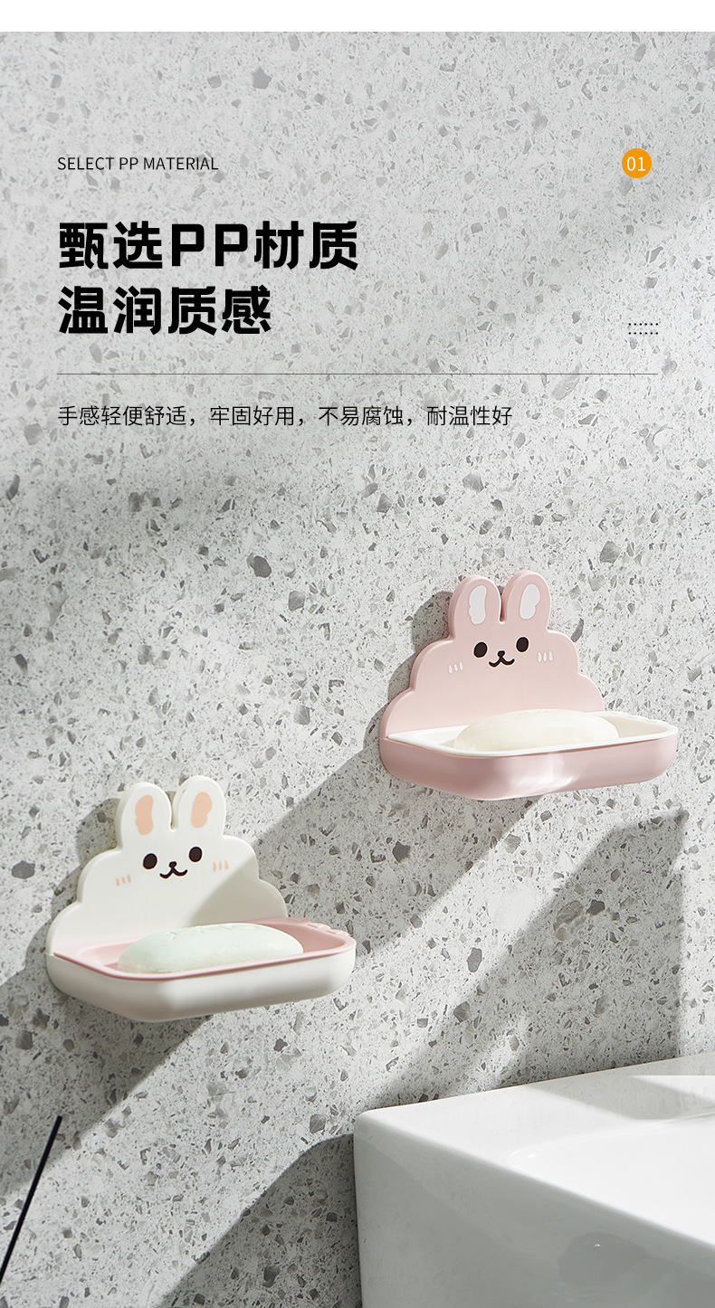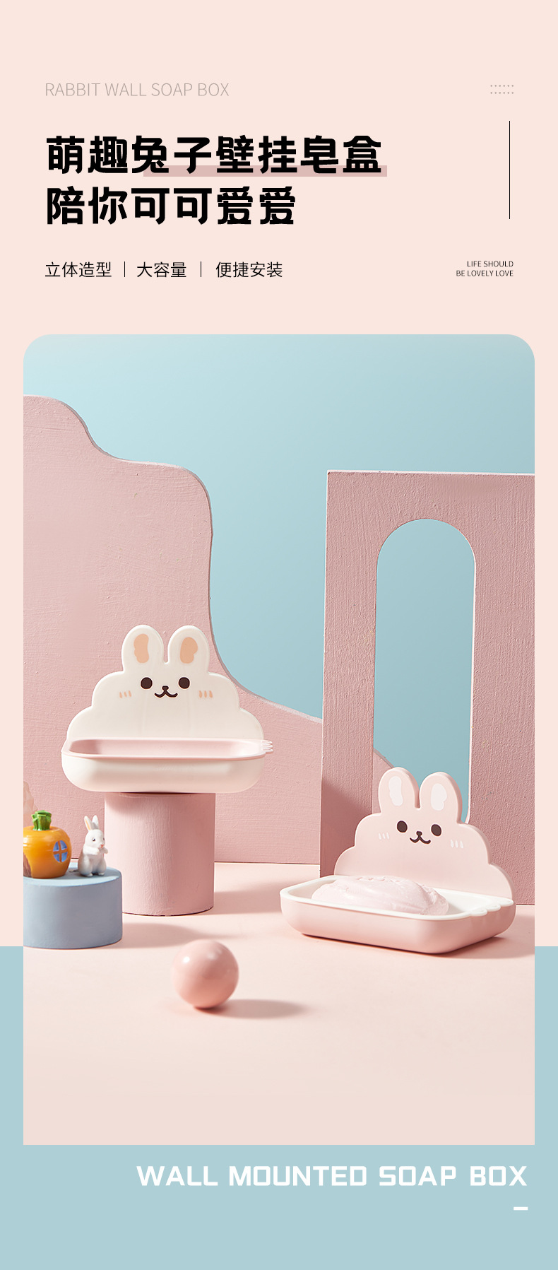 Caja de jabón nueva caja de jabón de conejo de dibujos animados para el hogar estante de jabón montado en la pared drenaje de doble capa sin ponche