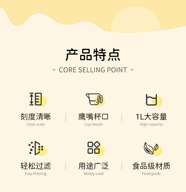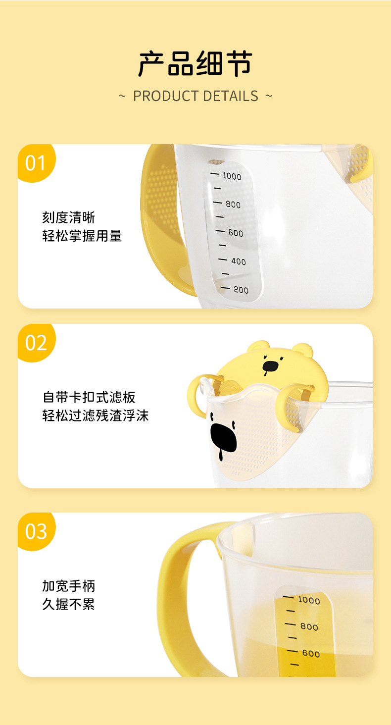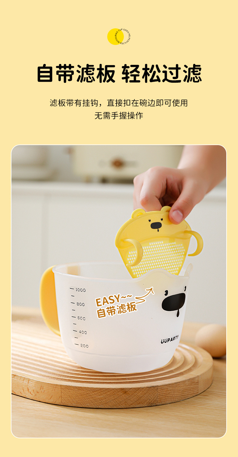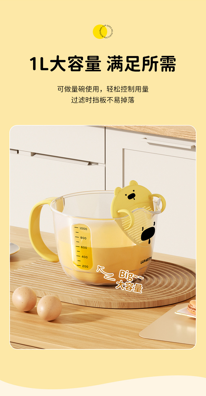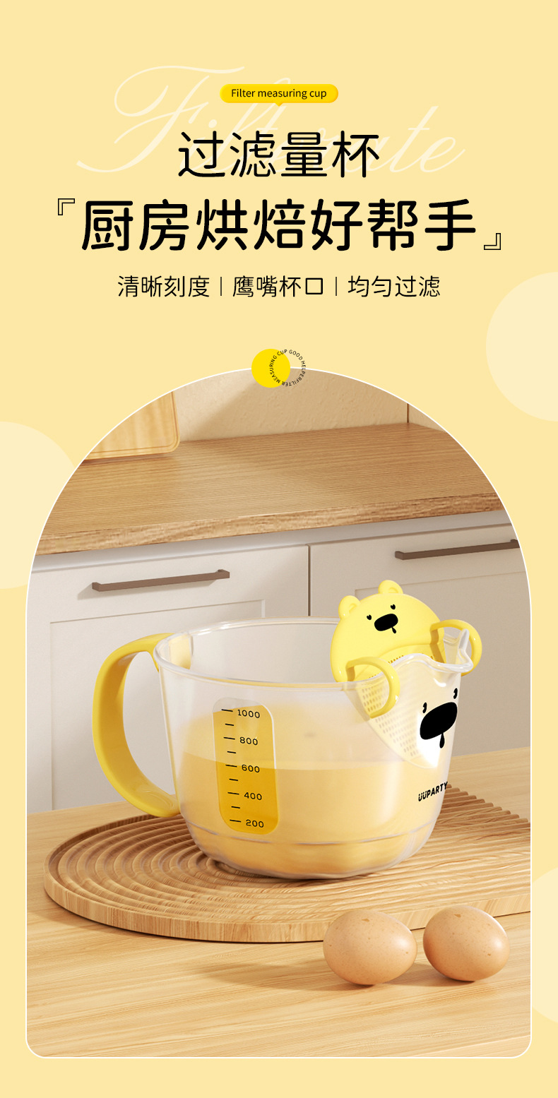 Taza medidora de filtro líquido de huevo con escala, artefacto de Taomi, taza de batido de plástico para hornear de grado alimenticio de cocina, gran capacidad