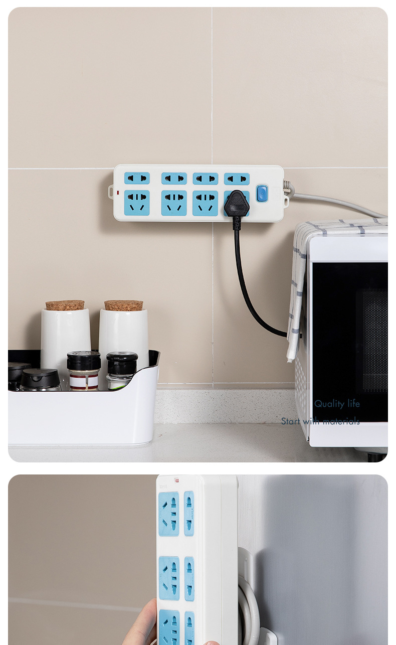 Row plug holder etiqueta de la pared colgante de almacenamiento sin fisuras fila Punch-free plug Board socket colgante de pared adhesivo