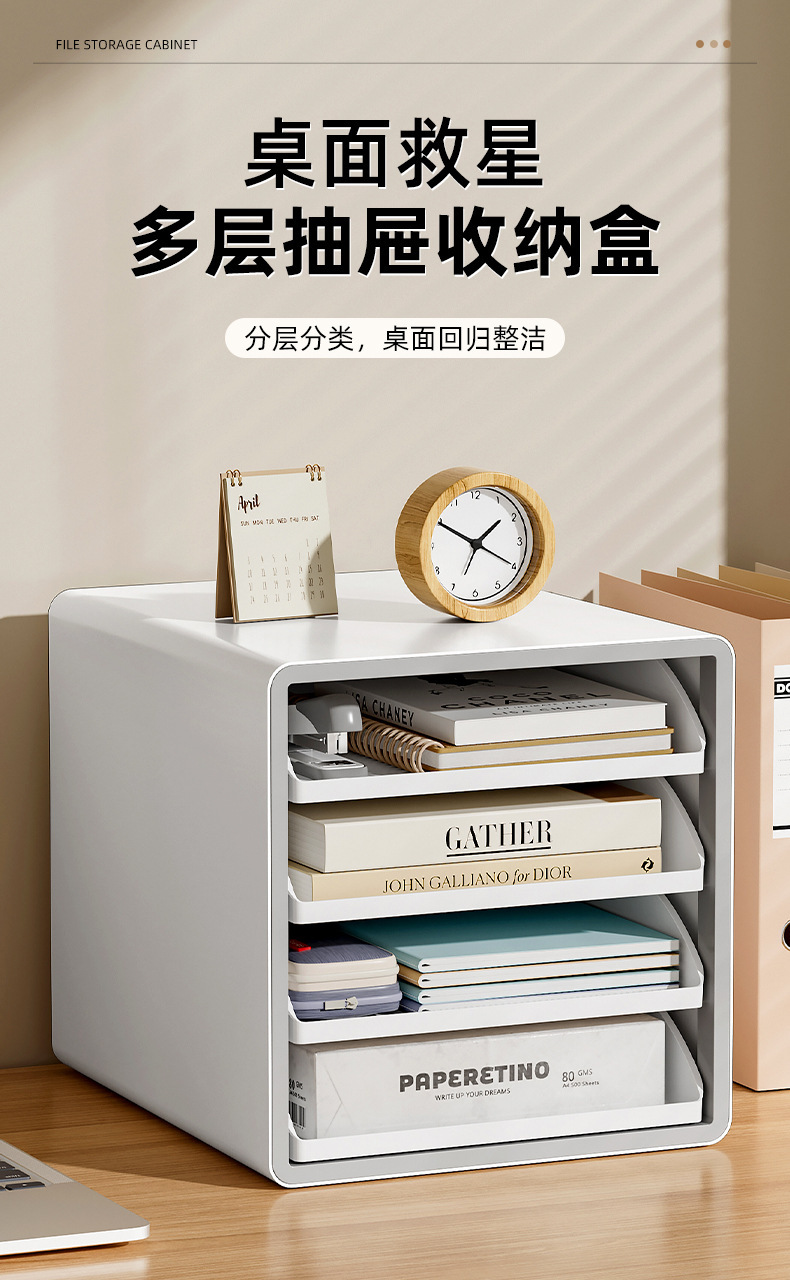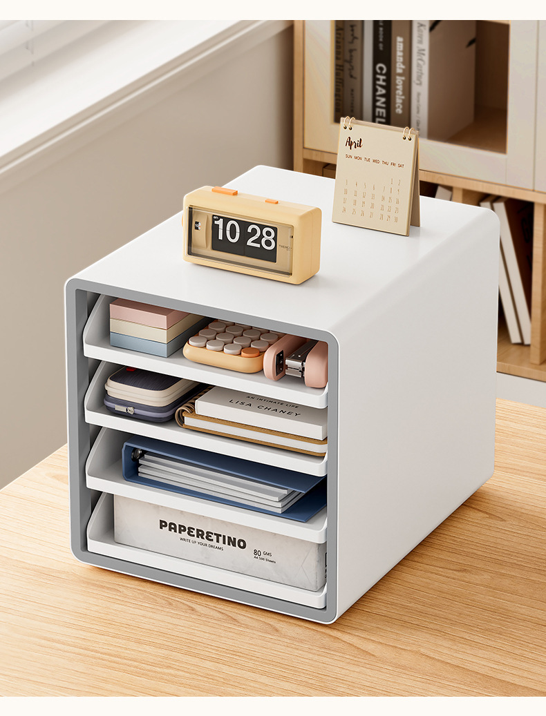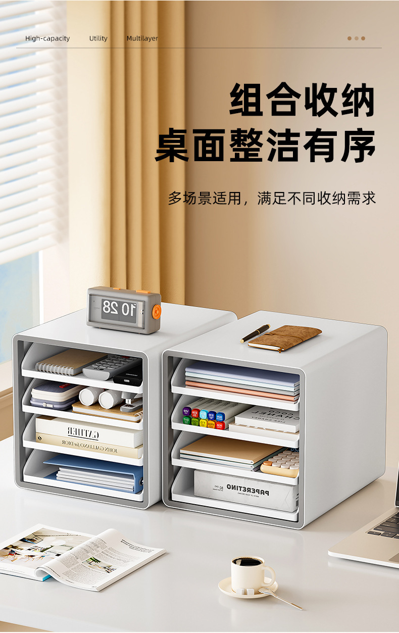 Caja de almacenamiento de archivos de oficina A4 Caja de almacenamiento de papelería Caja de almacenamiento de escritorio abierta multicapa Estante de clasificación de libros