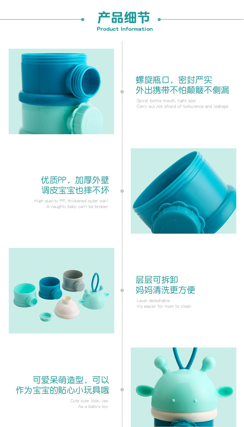Caja de leche en polvo para bebés portátil suplemento alimenticio bebé sub-embalaje tamaño pequeño caja de polvo de arroz sellado Almacenamiento de rejilla de leche en polvo