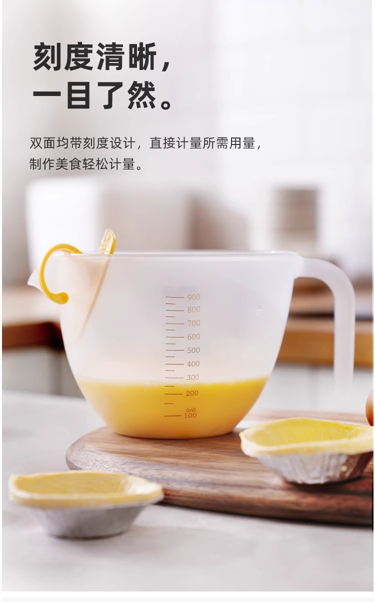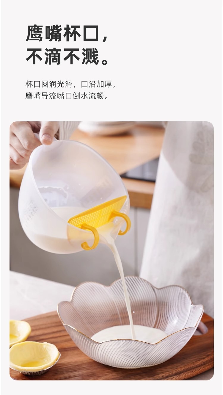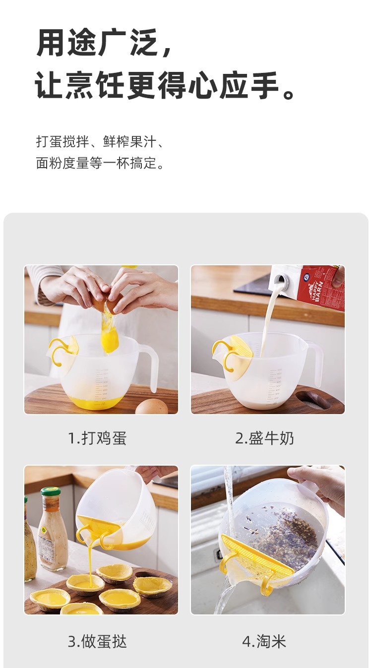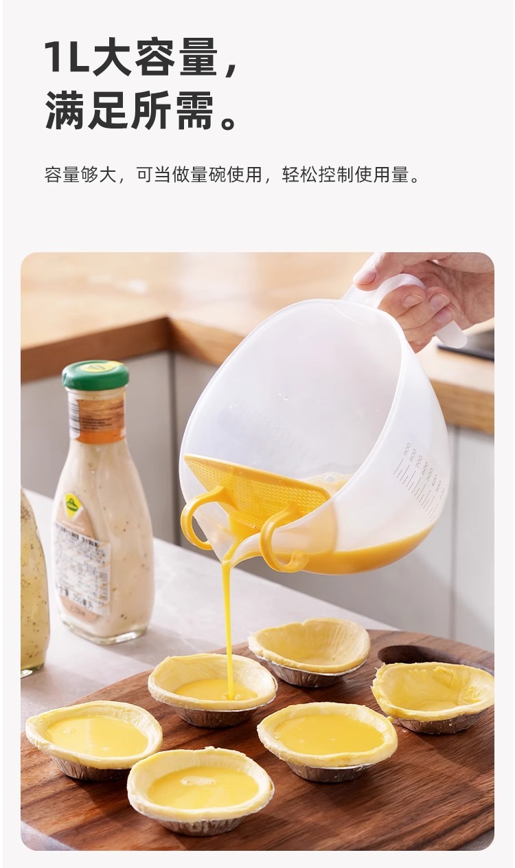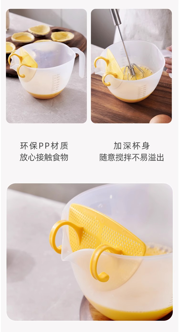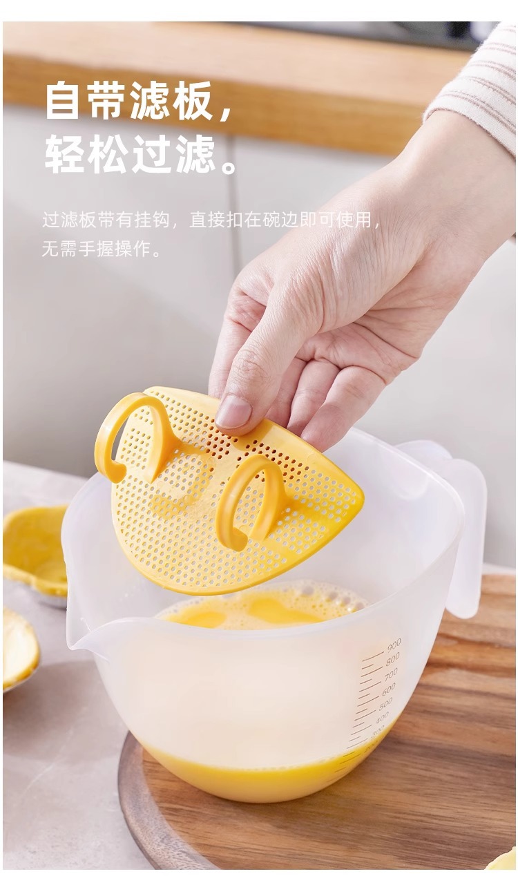 Filtro taza de medición con escala de plástico huevo batir taza ml taza de medición huevo líquido tazón de mezcla para hornear leche de soja tazón especial