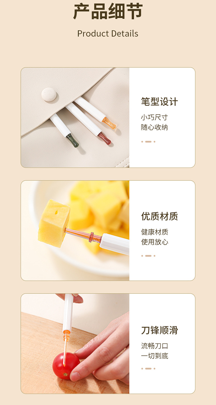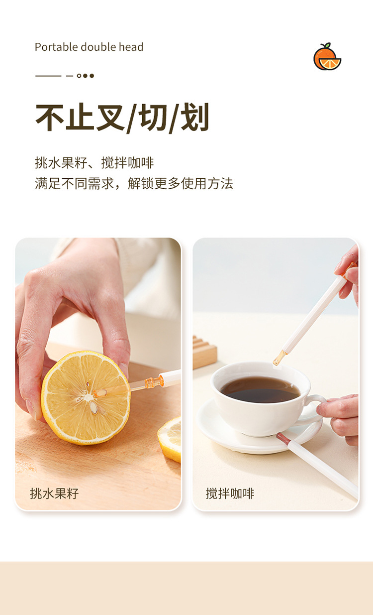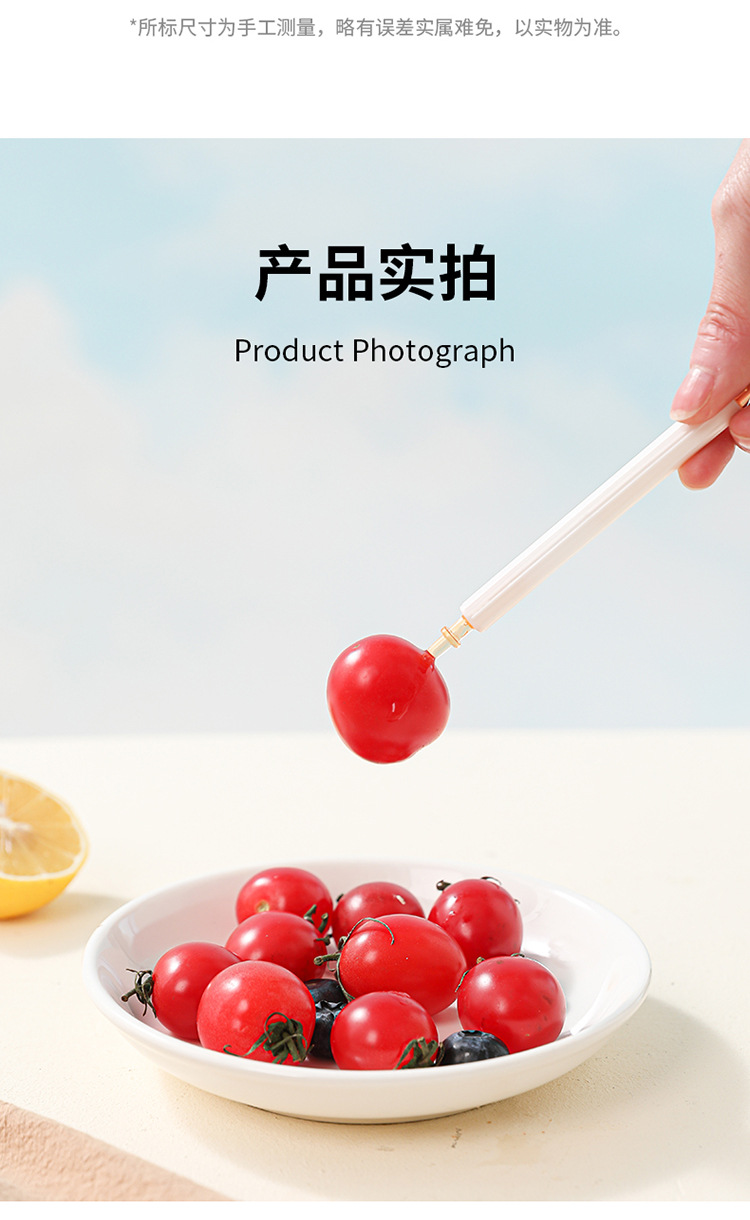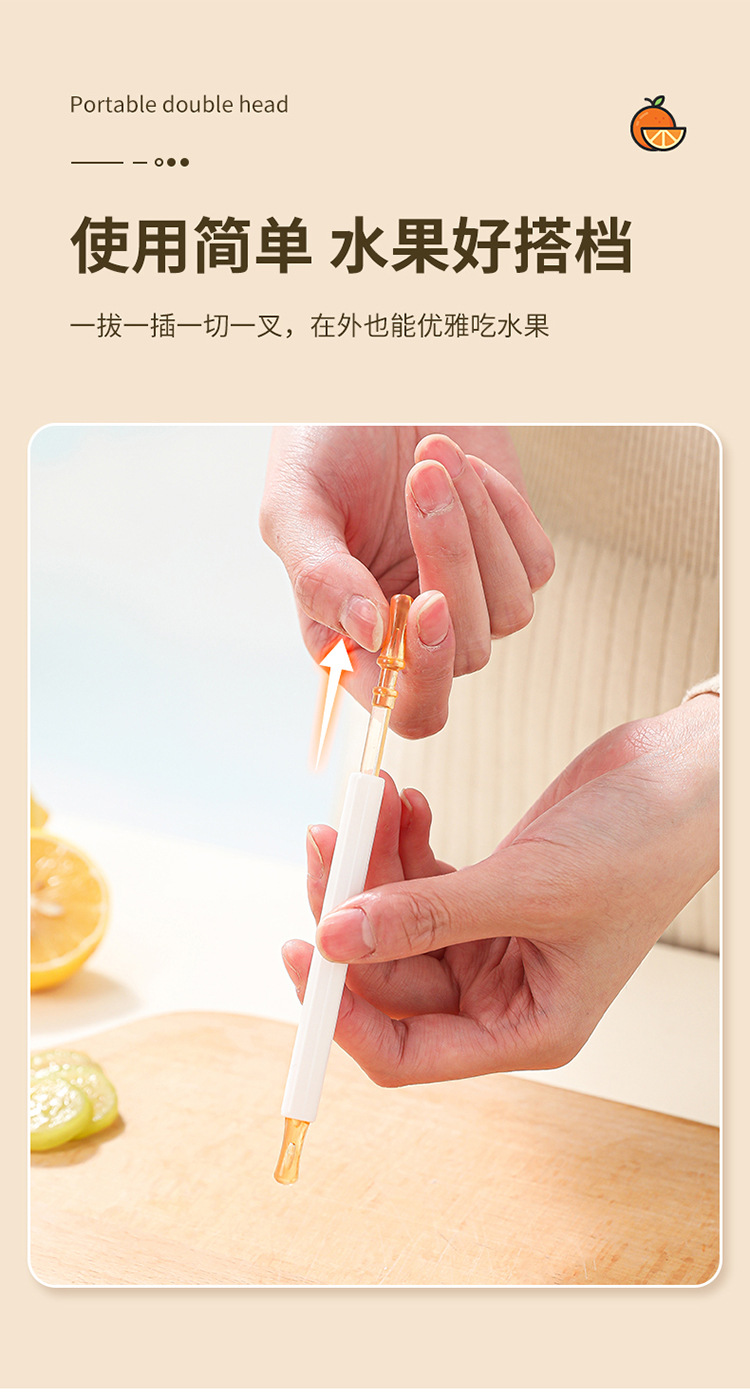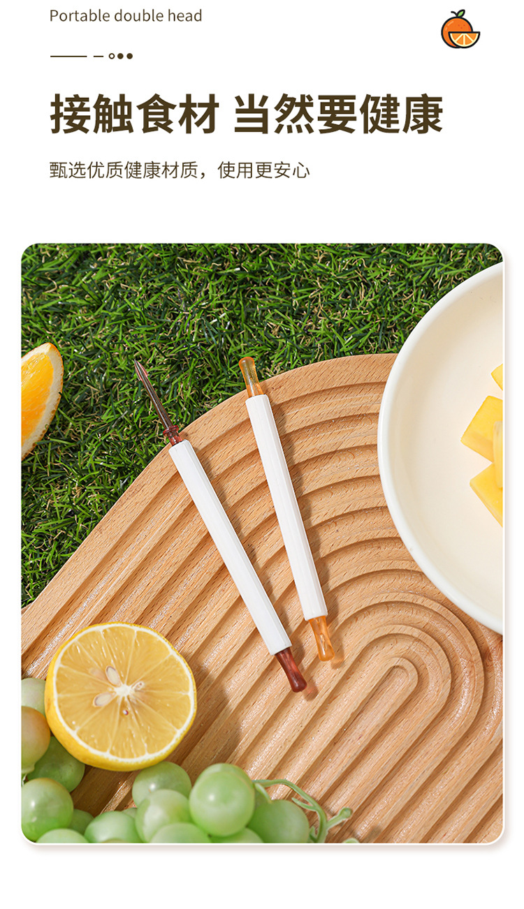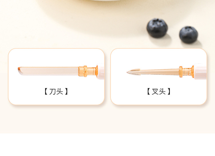 | Especificaciones | Tenedor de frutas de doble cabeza - rojo, tenedor de frutas de doble cabeza - amarillo, tenedor de frutas de doble cabeza - verde |