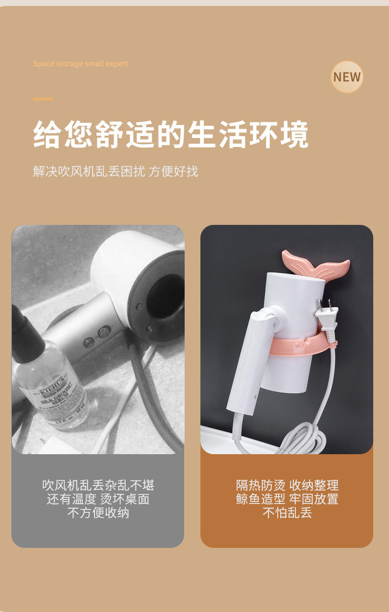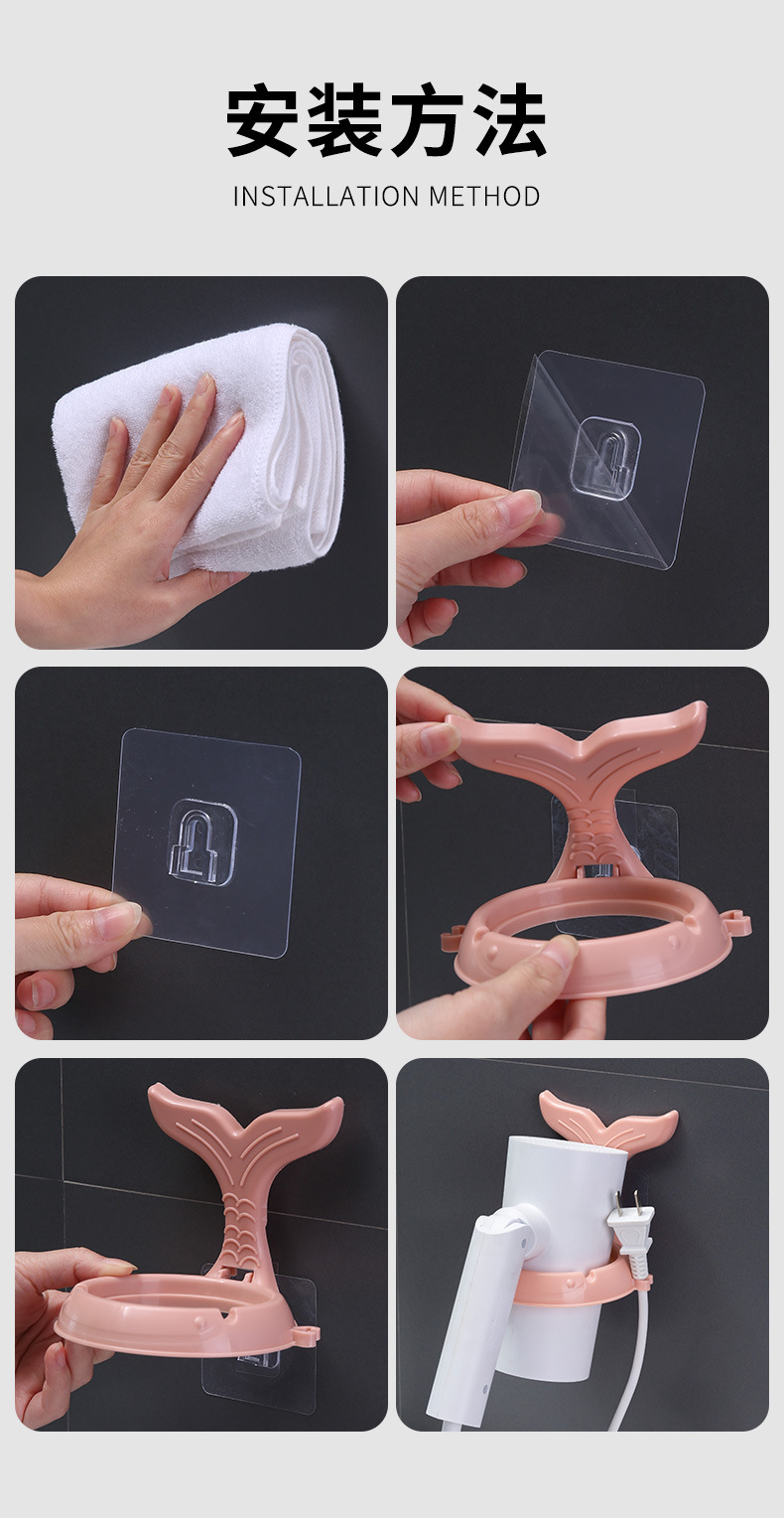 Personalizado Agregar texto Estante de secador de pelo sin perforación Estante de secador de pelo Soporte de secador de pelo Ventas directas de fábrica