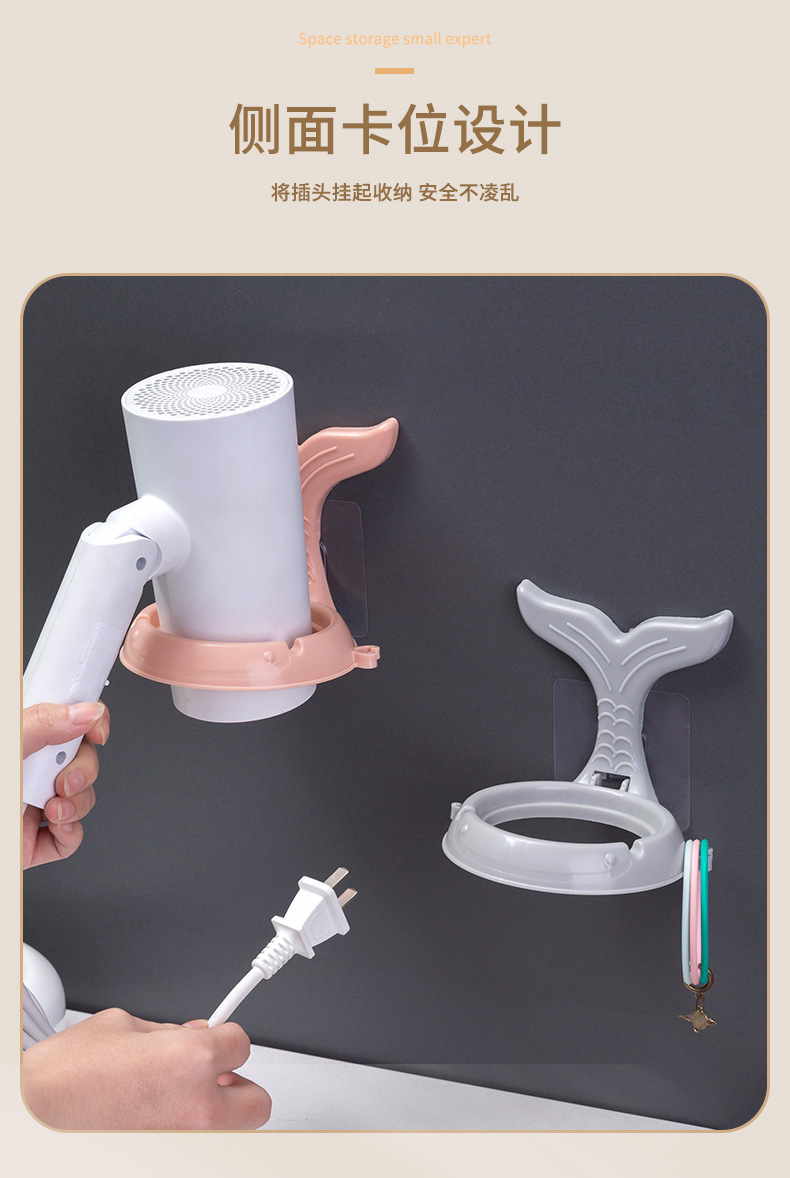 Estante para secador de pelo sin perforación, soporte de plástico transfronterizo para baño, guardarropa, estante de almacenamiento para secador de pelo