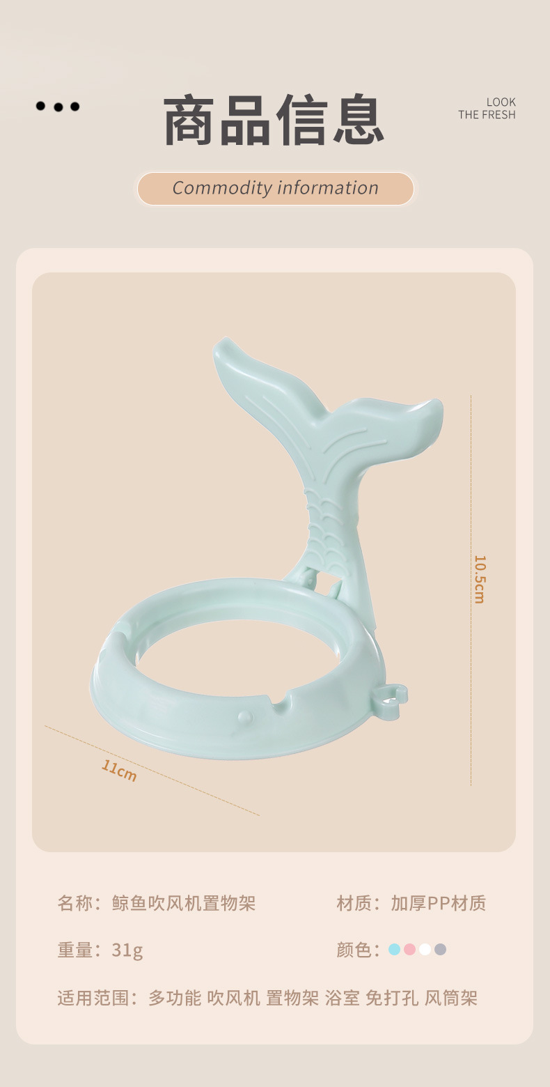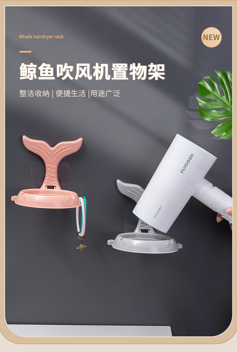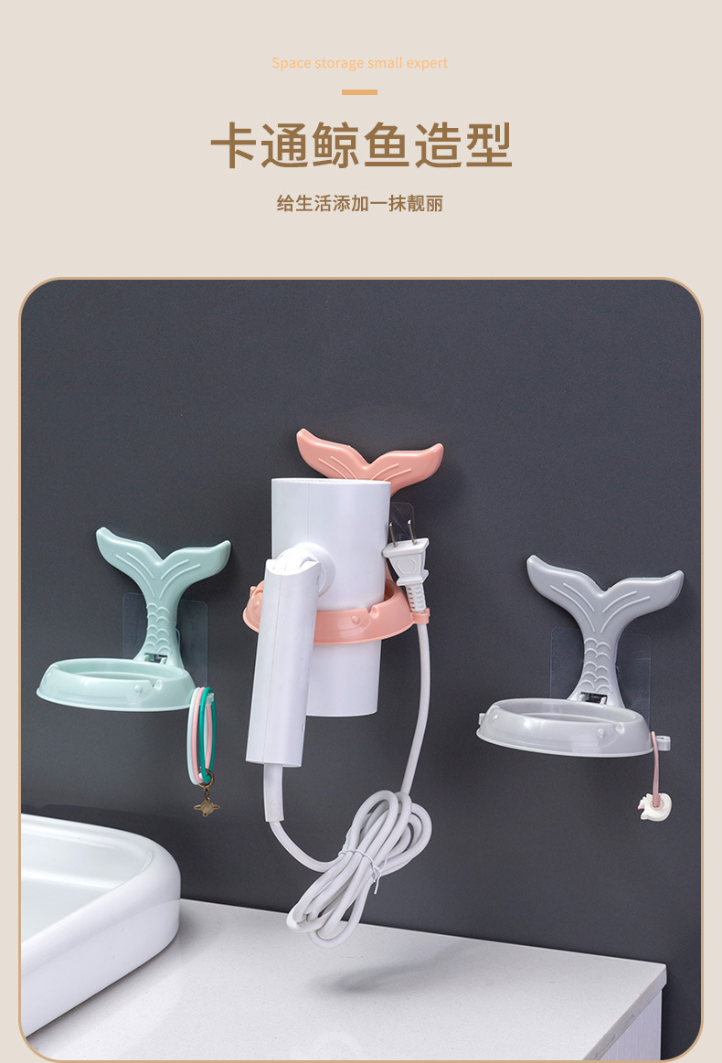 Multi-funcional de perforación libre de aseo secador de pelo de almacenamiento de rack de dibujos animados ballena plegable rack de almacenamiento