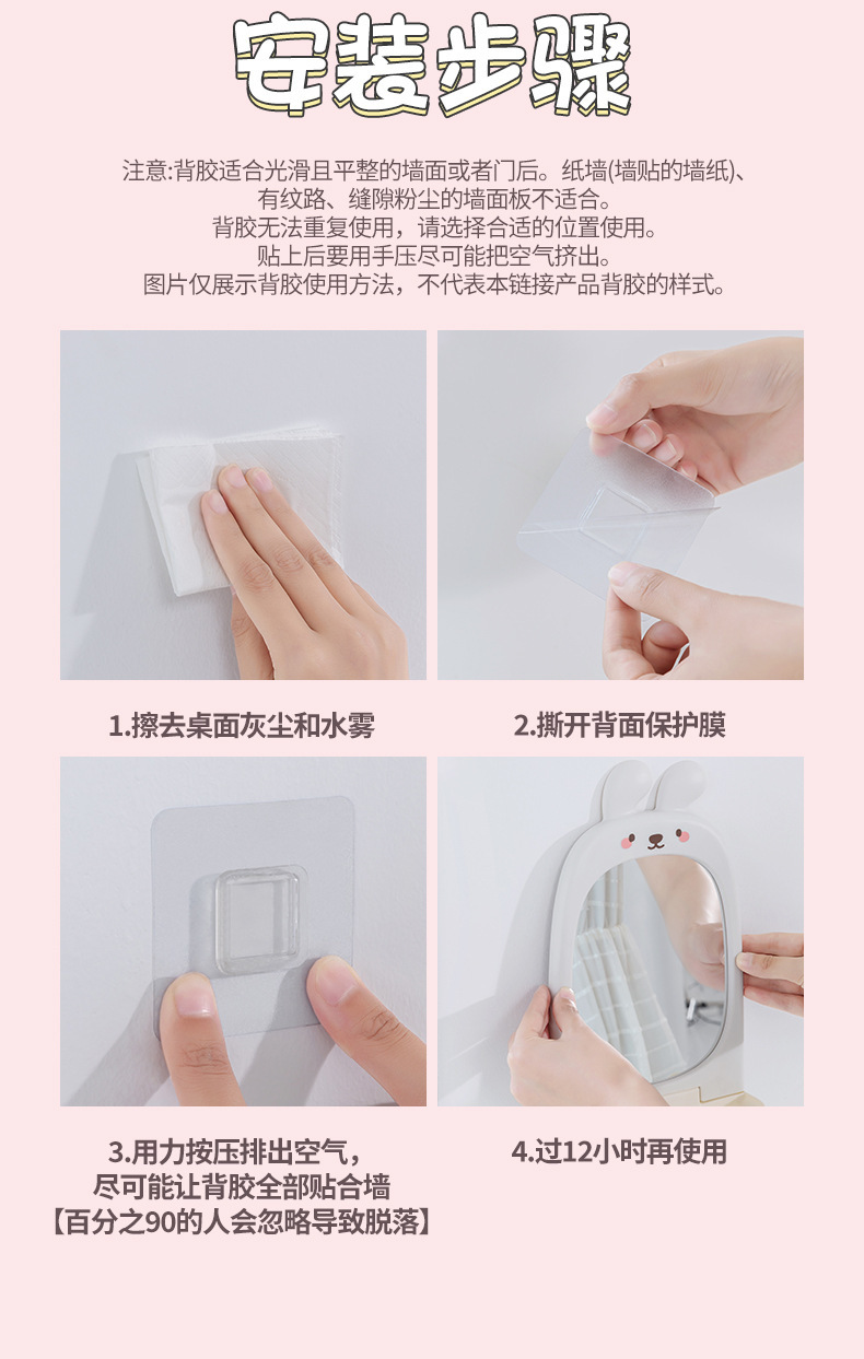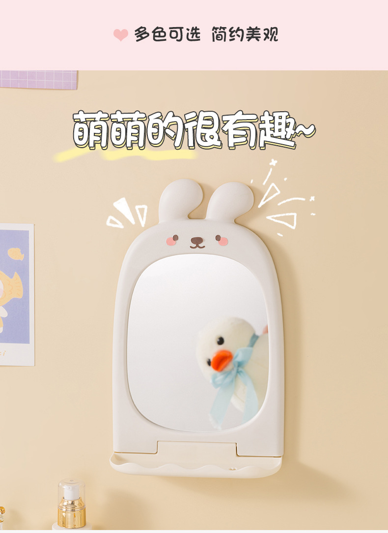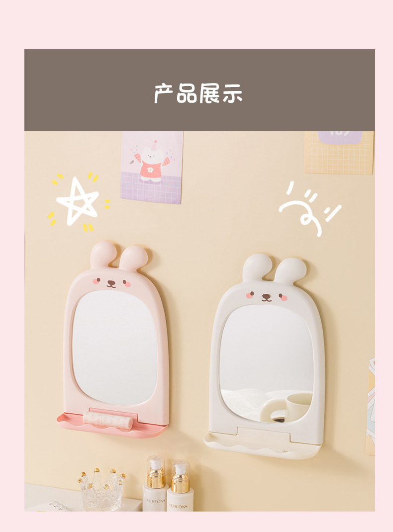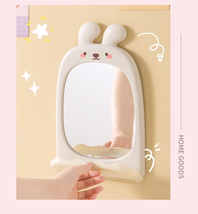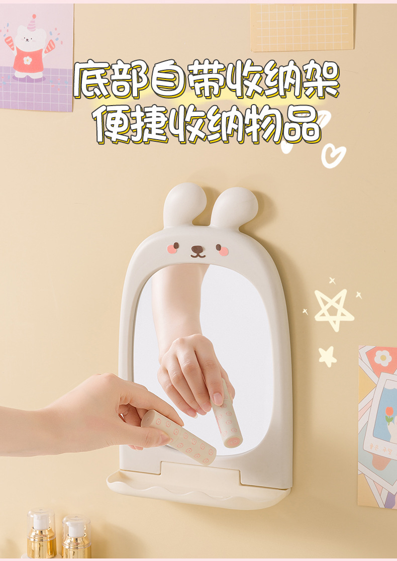 Espejo de estilo multifuncional de dibujos animados para el hogar Espejo de baño sin perforación Espejo de pared Espejo de maquillaje de baño