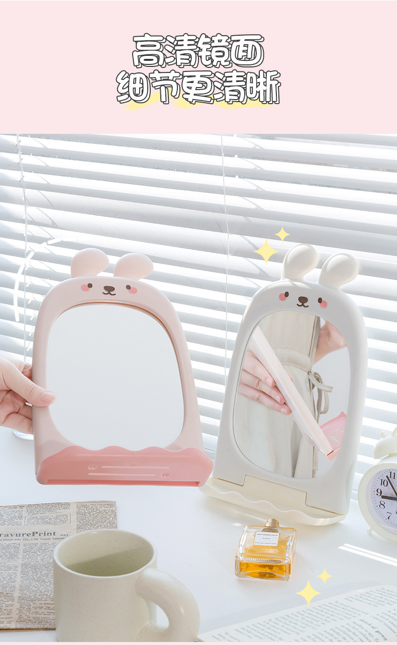 Nuevo espejo de maquillaje de escritorio, dormitorio de estudiantes, espejo pequeño, espejo de escritorio, espejo plegable portátil, simple y lindo