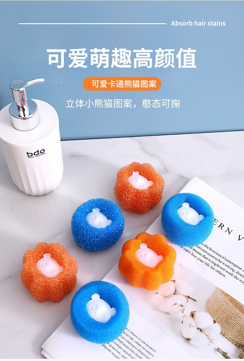 Lavadora de cabello de lavadora, bola de lavandería de oso, esponja de limpieza de cabello pegajoso, artefacto doméstico de poderosa descontaminación anti-enredamiento, lavado y protección