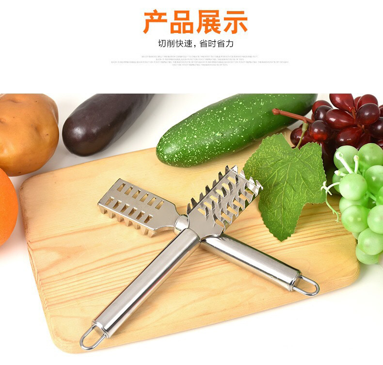 Cuchillo creativo de raspado de acero inoxidable 2 en 1 raspado de raspado de raspado multifuncional de verduras frijoles raspado de alambre cortador