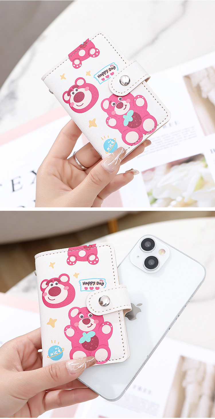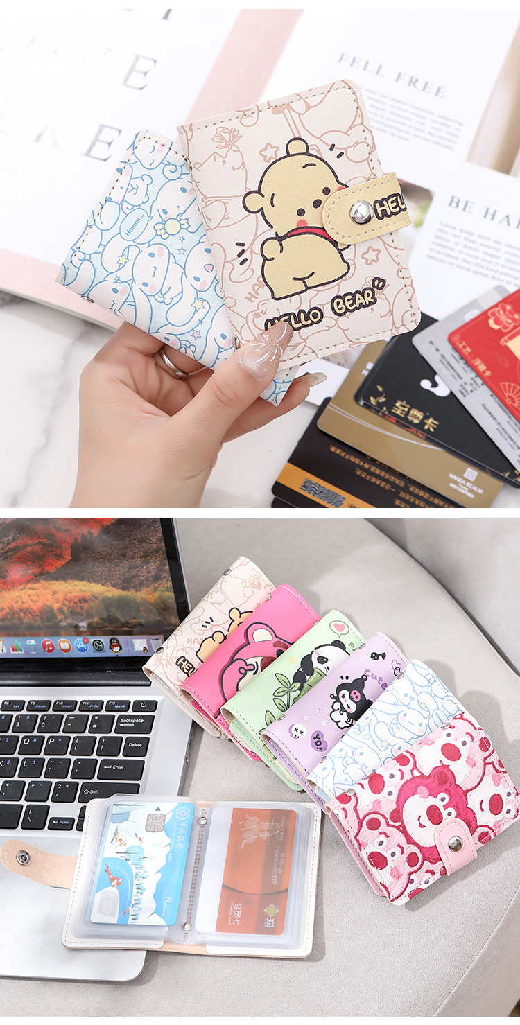 Patrón de dibujos animados personales para mujeres bolsa de tarjetas compacta anti-damagnetizante gran capacidad 20 tarjetas transparentes tarjeta de almacenamiento de tarjetas de tarjetas ultra delgada