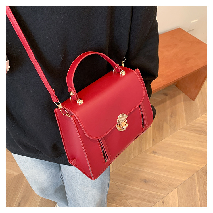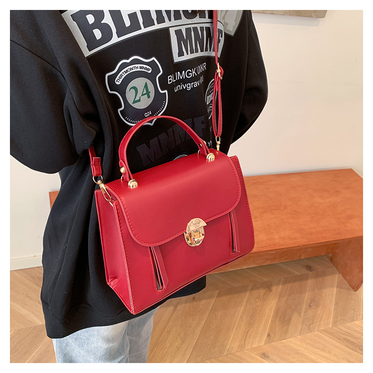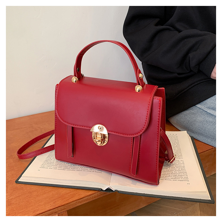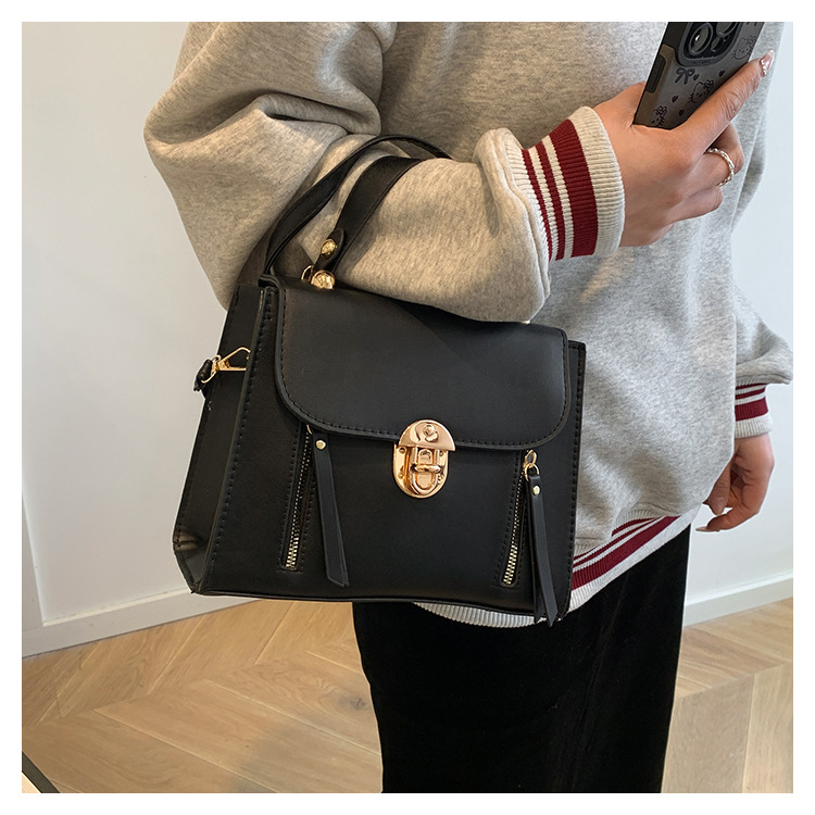 Moda, atmósfera, bolso de hombro simple, primavera 2025, nuevo estilo, bolso de mensajero para mujer, bolso cuadrado con cerradura de personalidad retro, marea