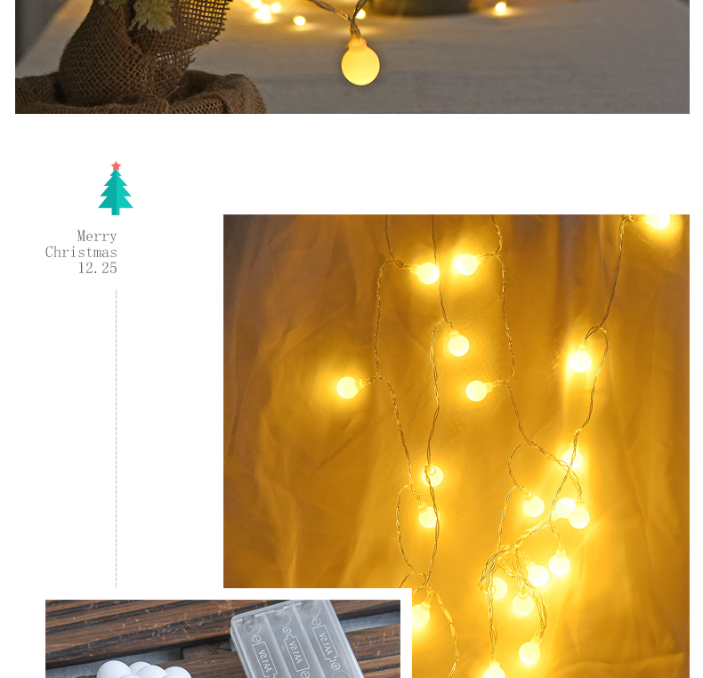 | Potencia | Blanco cálido/bola/2 m/caja de batería de dos secciones,Blanco cálido/bola/5 m/caja de batería de tres secciones |