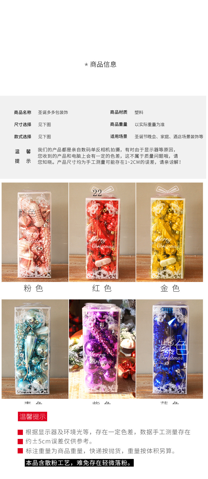 Bolas de Navidad transfronterizas 21 paquetes de árboles de Navidad colgantes de decoraciones de Navidad bolas de color