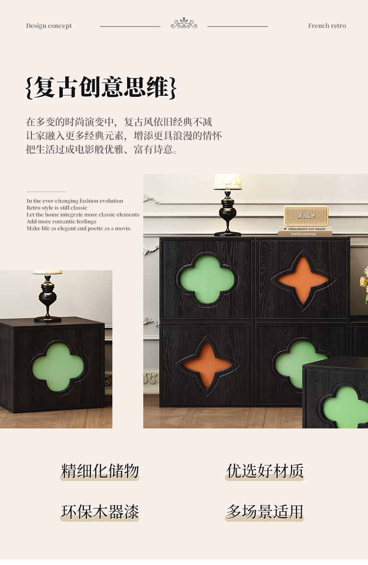 | Color | Gabinete multifuncional retro de lujo ligero |