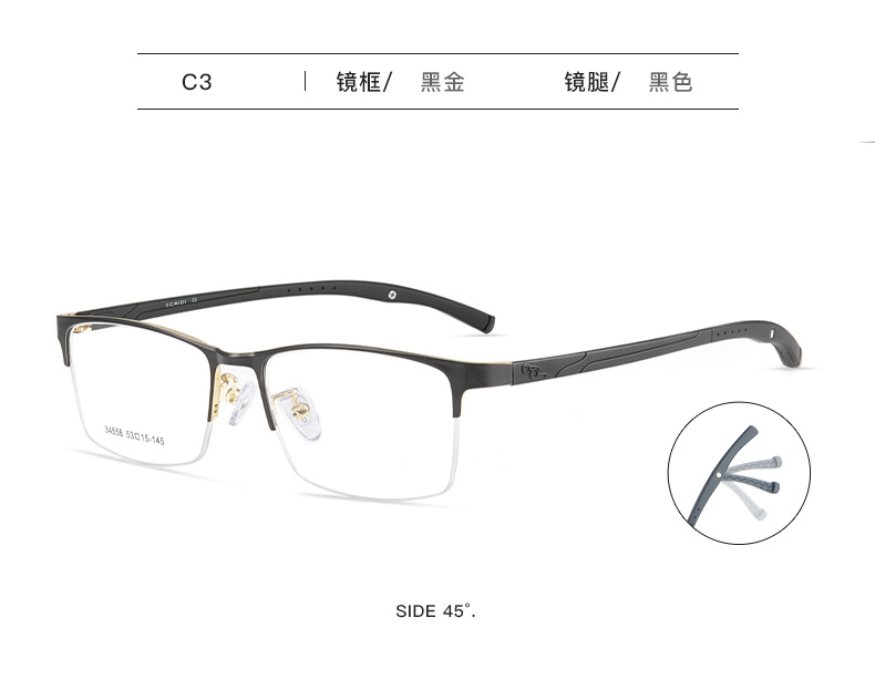 Ultra-resistente de plástico de acero deportivo antideslizante de aleación de medio Marco de gafas de negocios de cercanías todo-juego miopía Danyang al por mayor