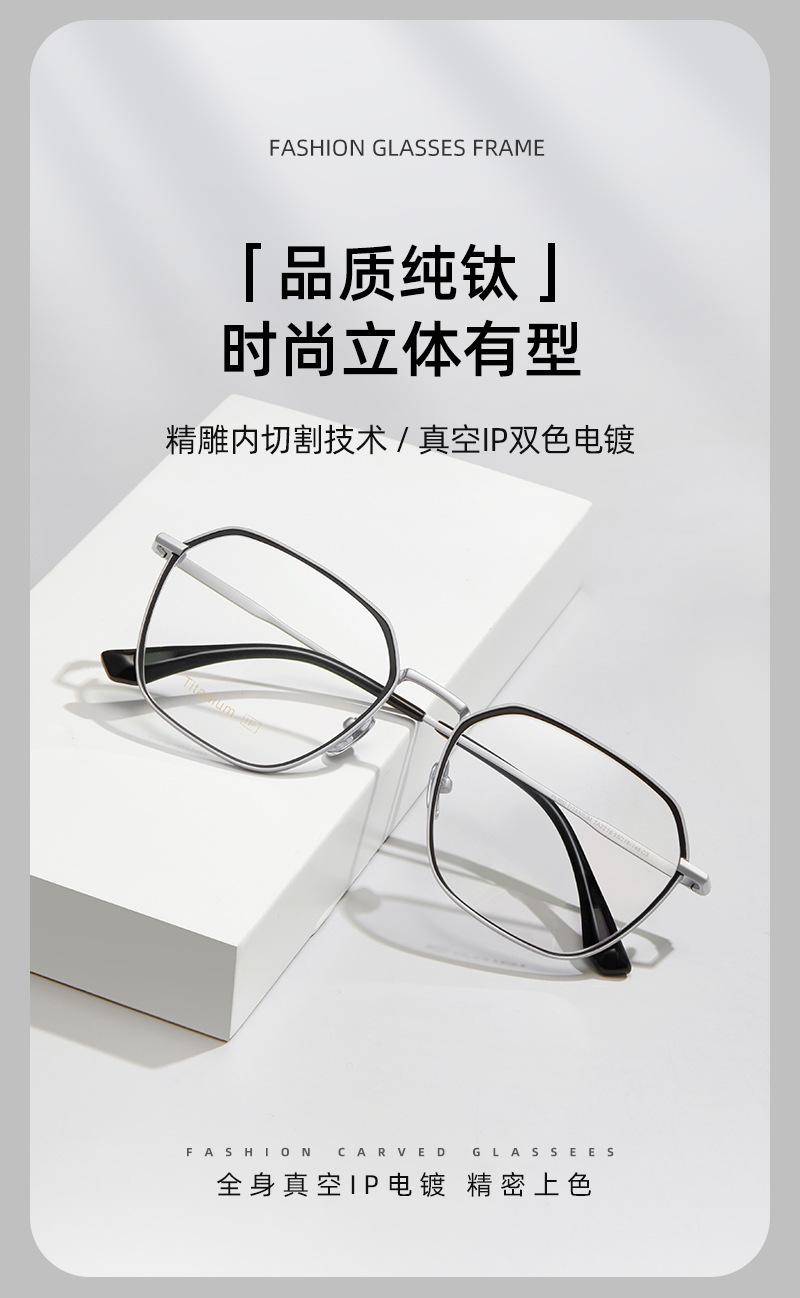 Ultra-ligero gran marco negocio puro titanio gafas marco proceso de corte interno vacío IP chapado puede ser equipado con grados de los hombres al por mayor