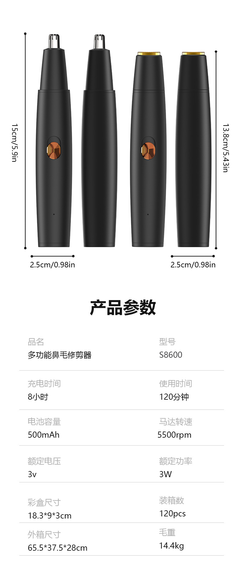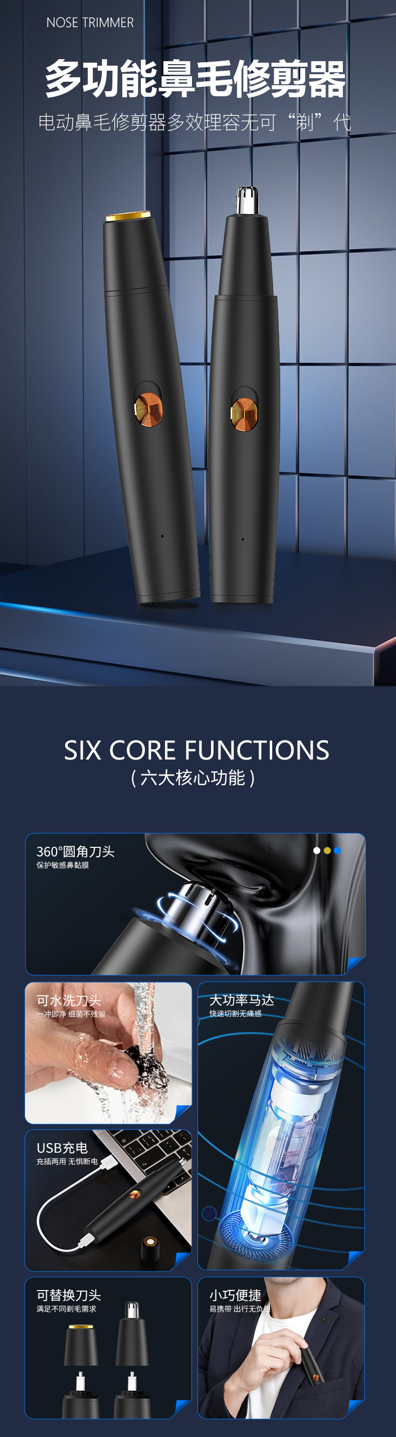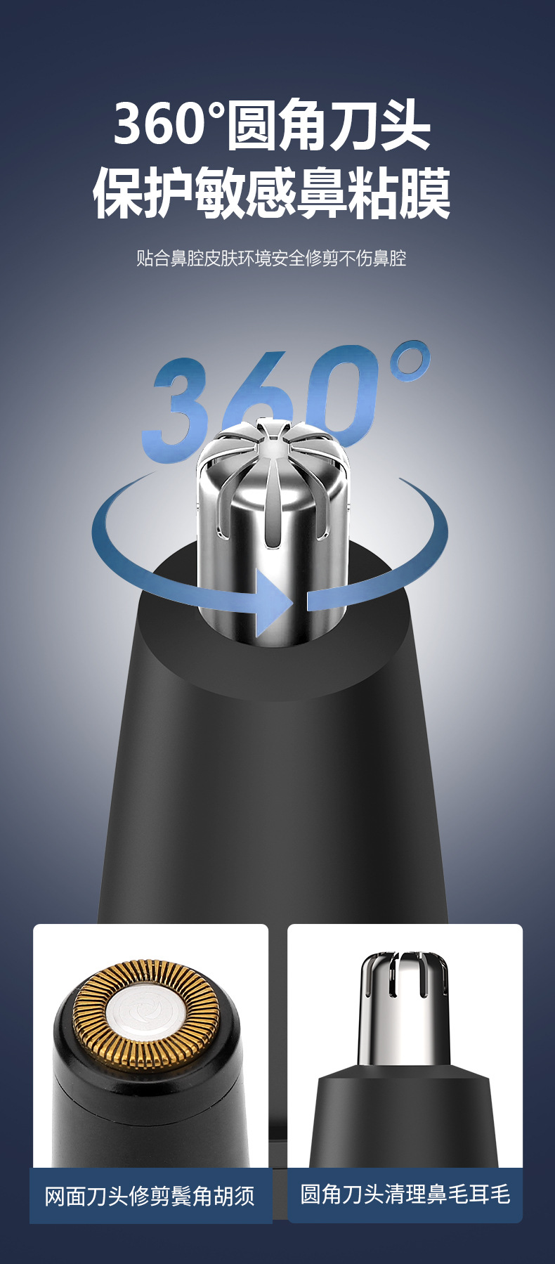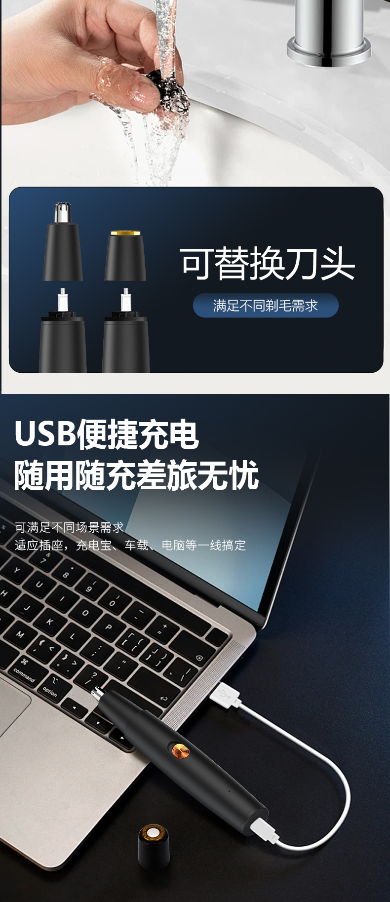 产品特点:鼻毛剃须 二合一 内置电池