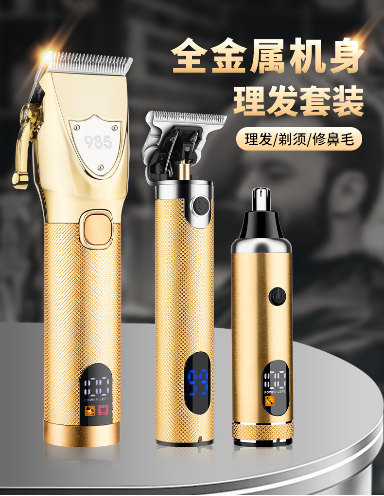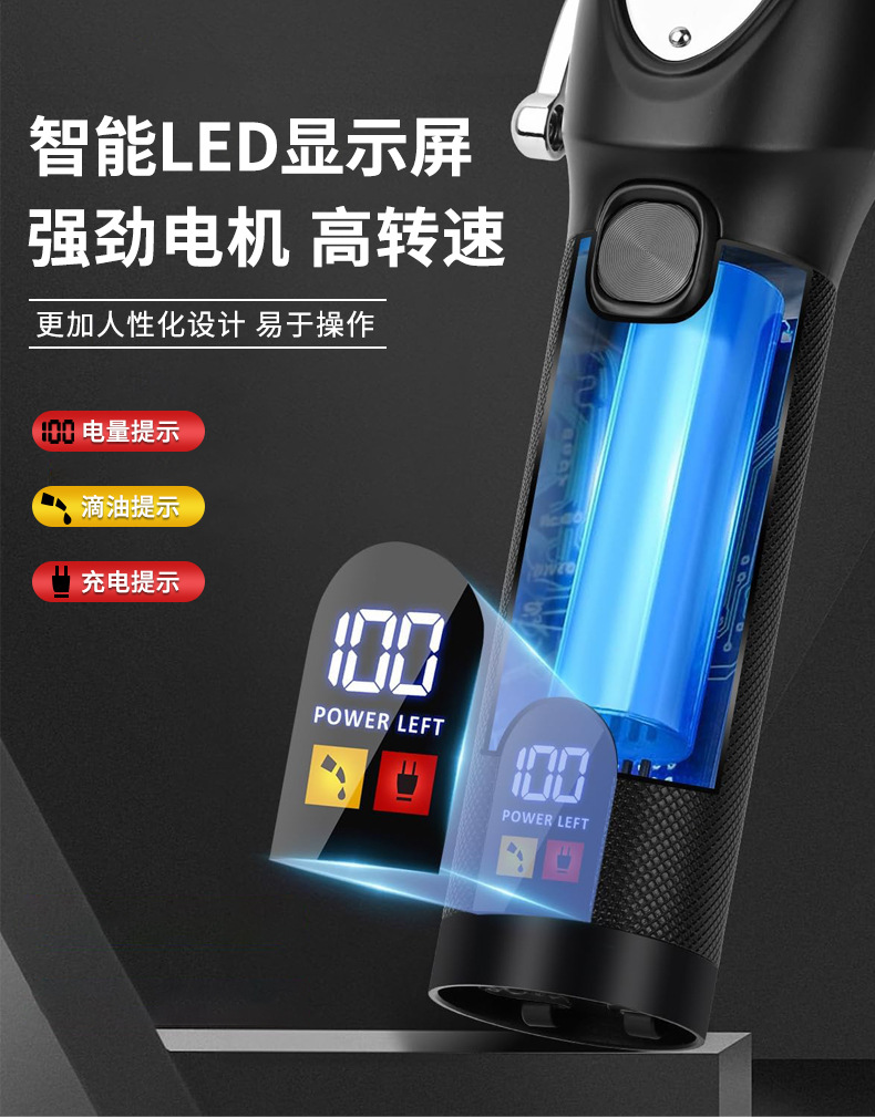 产品特点:液晶电量显示 理发器3档转速调节 金属机身