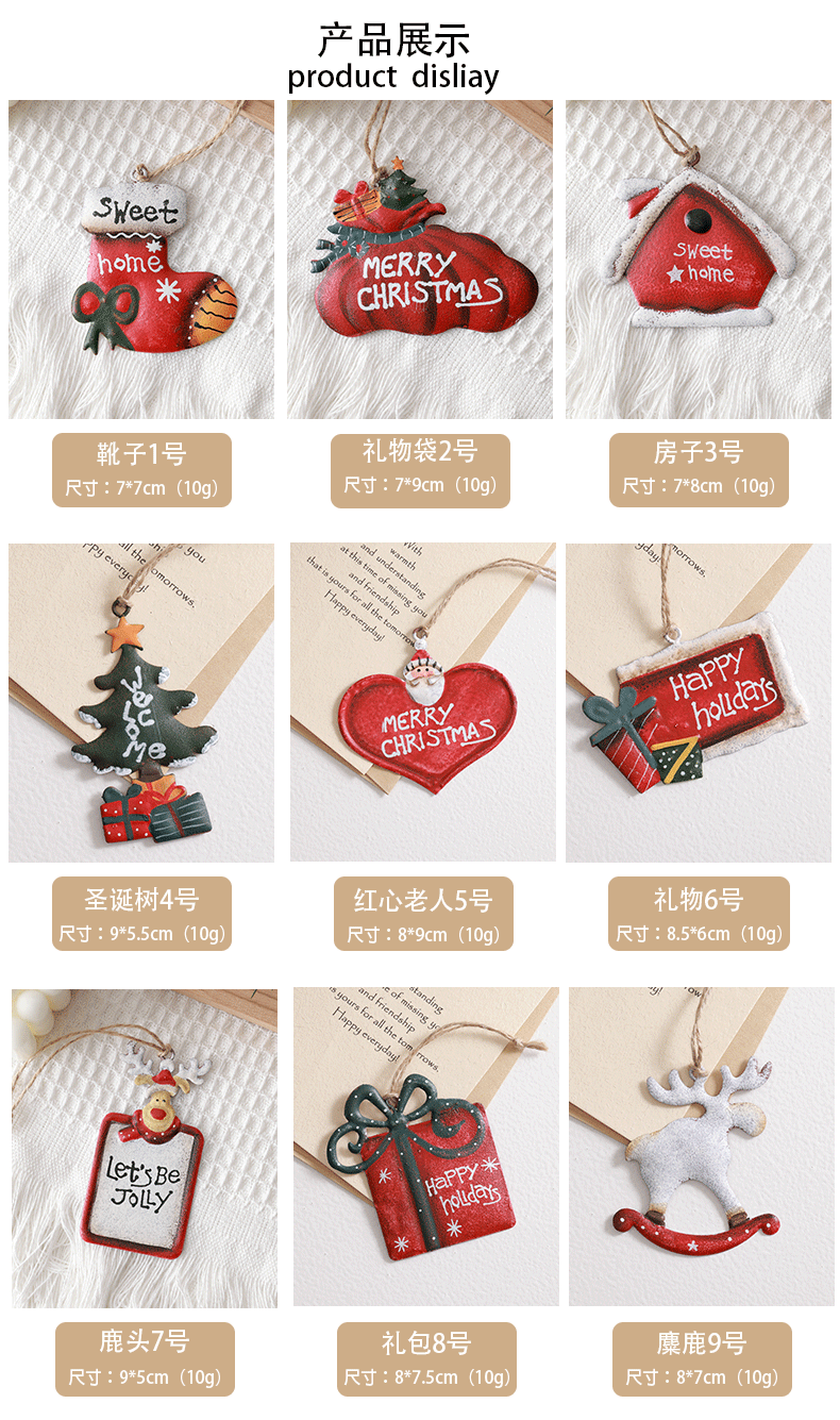 | Especificaciones | BOTAS número 1, bolsa de regalo número 2, casa roja número 3, árbol de Navidad número 4, corazón rojo número 5, regalo número 6, cabeza de ciervo número 7, paquete de regalo número 8, alce número 9 |