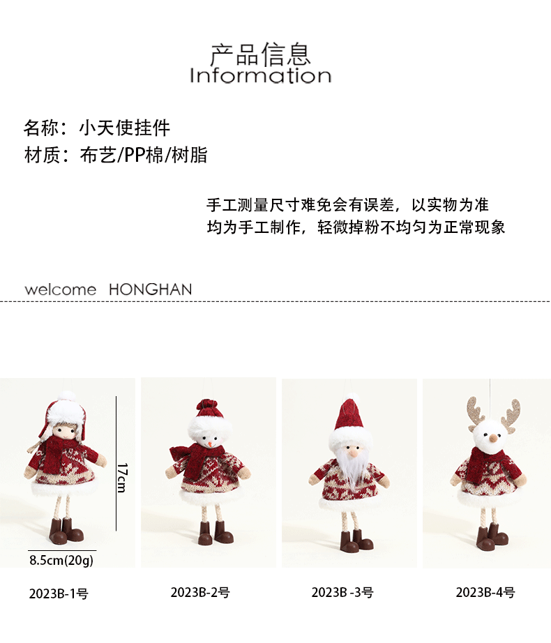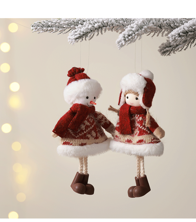 Nuevos colgantes de ángel de Navidad transfronterizos de tela niña vieja muñeca muñeca muñeca de nieve decoración de árbol de Navidad