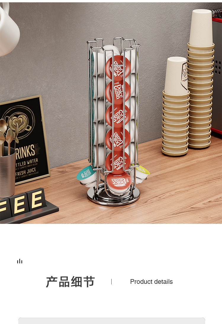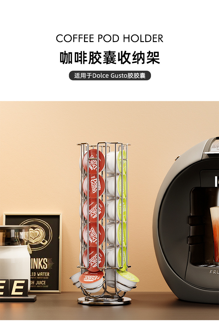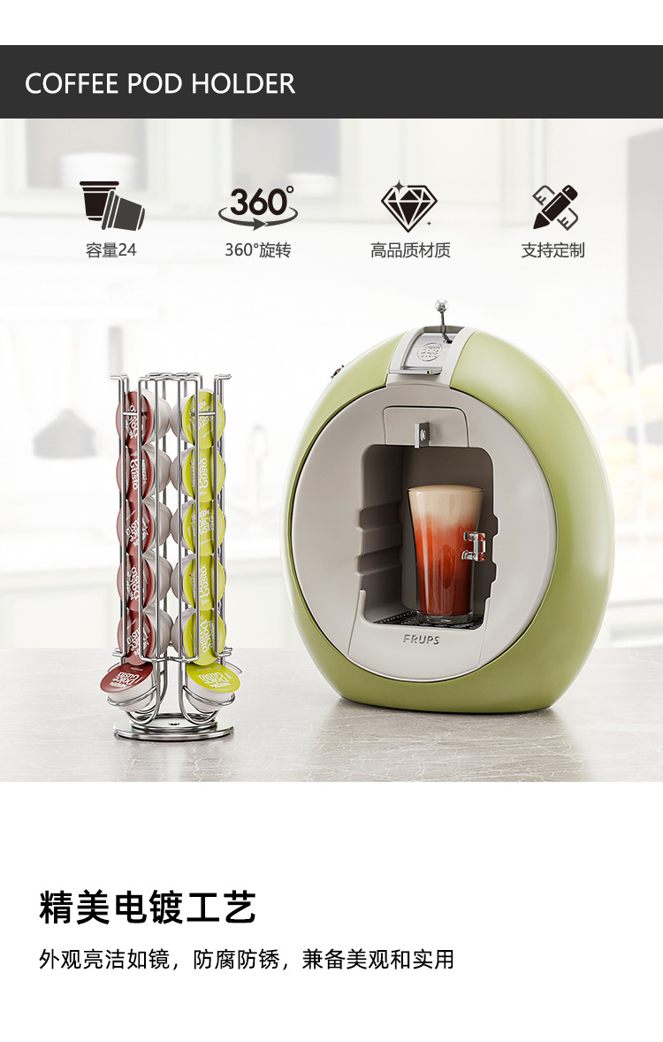 Soporte giratorio para cápsulas de café Dolce Gusto, 24 piezas, diseño elegante de metal cromado