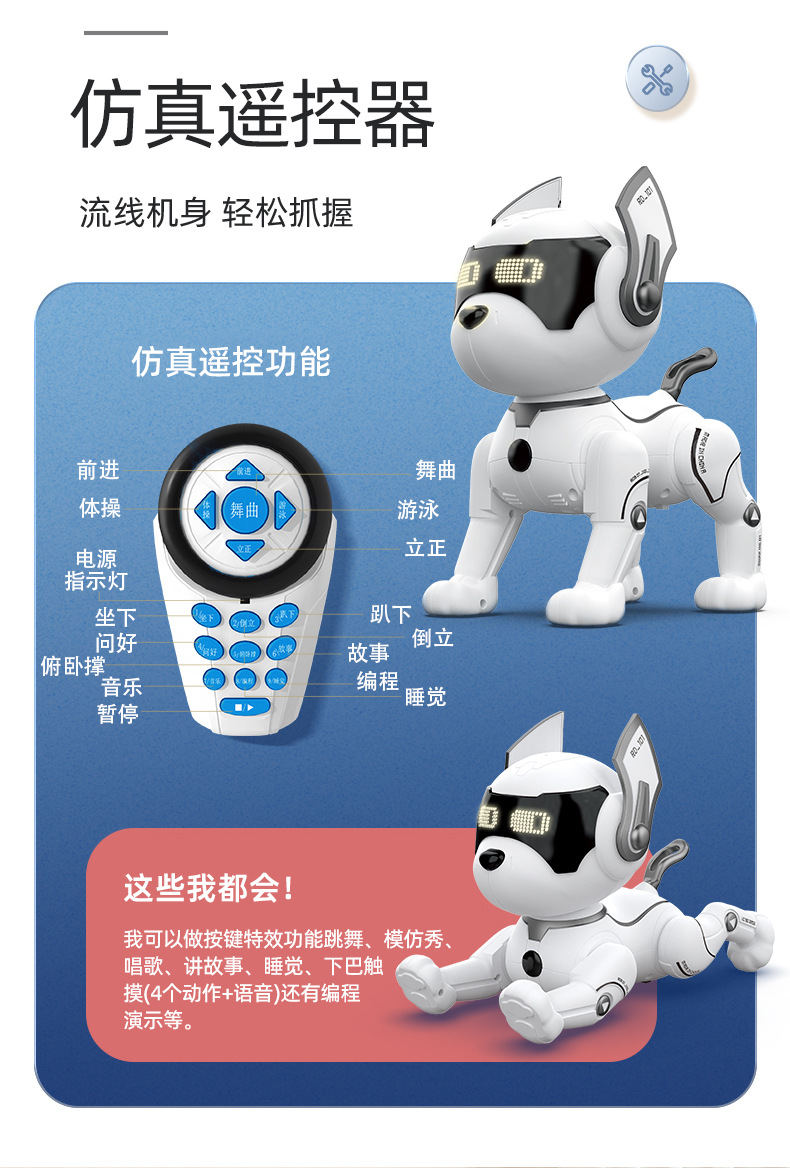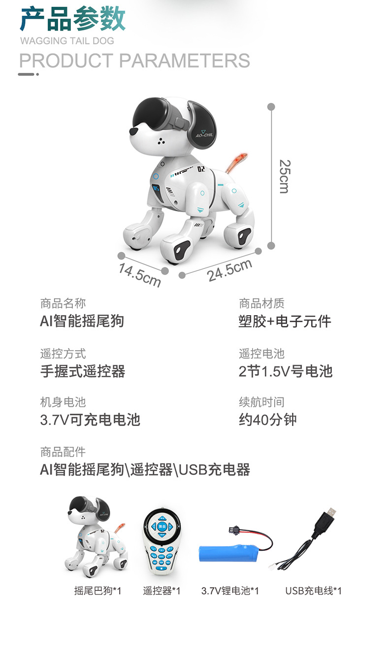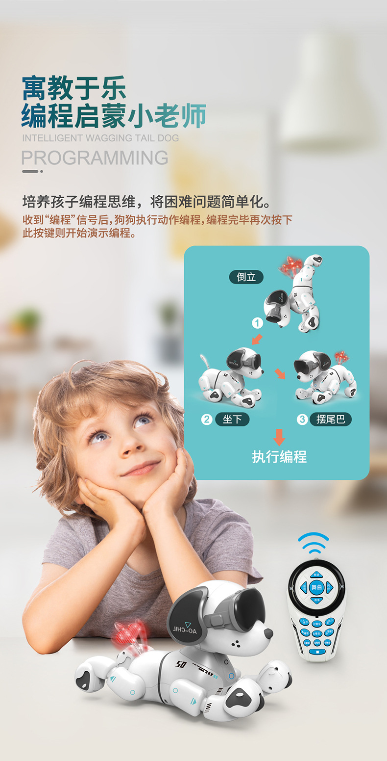 | Colores | A116 [Versión de control remoto] Carga directa USB para perros robot de educación temprana,A125 [Versión de control remoto de caja de regalo de ventana abierta] Carga directa USB para perros robot de educación temprana,8003 perro de cola [versión de control remoto] perro inteligente de educación temprana |